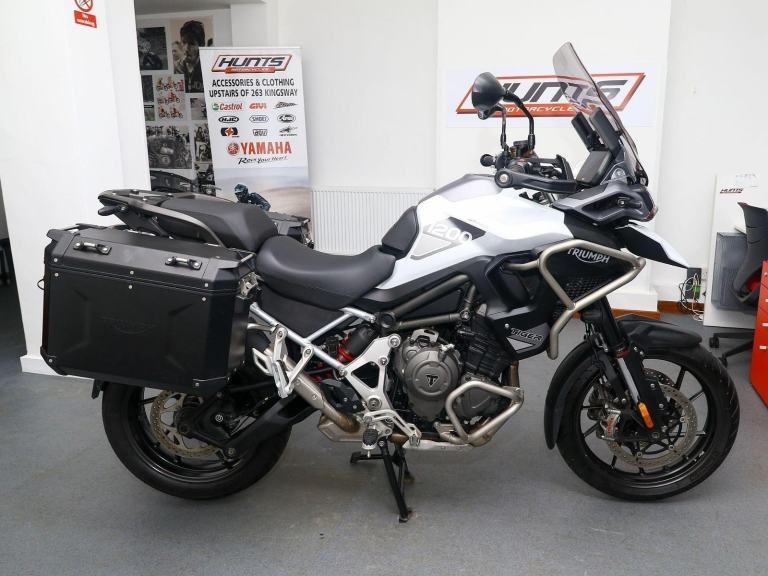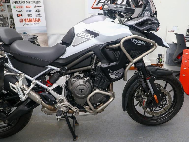 2022, '22 reg. Triumph Tiger 1200GT Pro. Complete with upper and lower engine bars, Triumph heated grips and seat, Triumph panniers, fender extender and Puig windscreen. Triumph dealer service history. Ready to tour and great value at £11,495.
