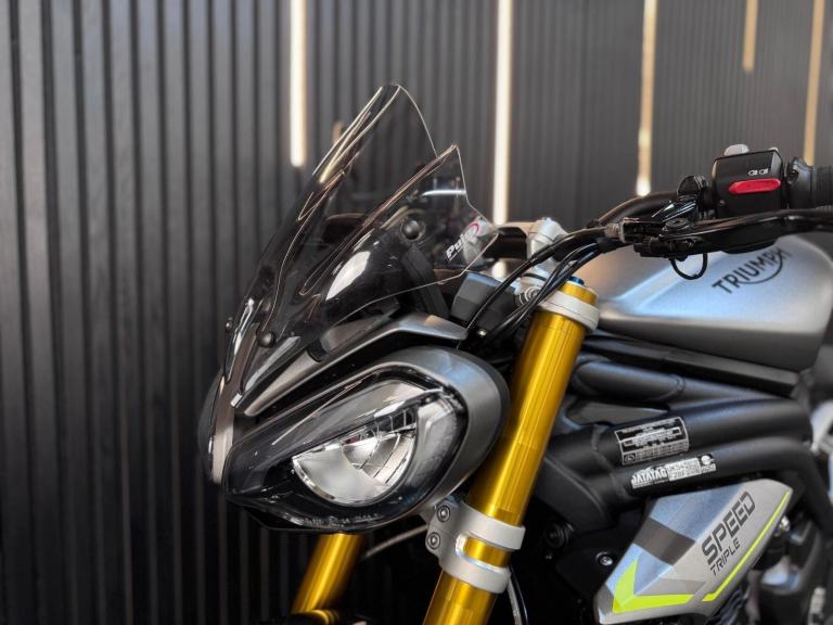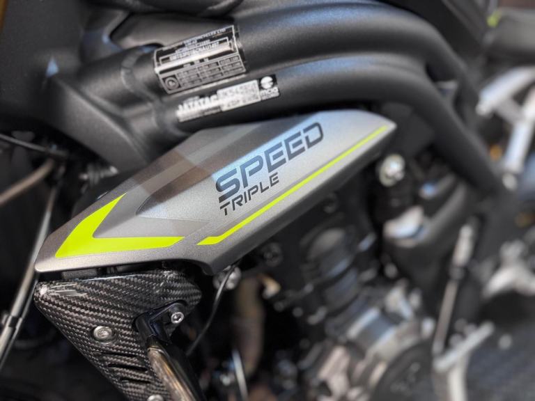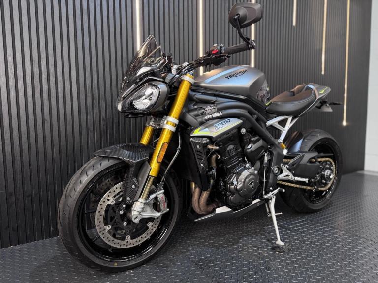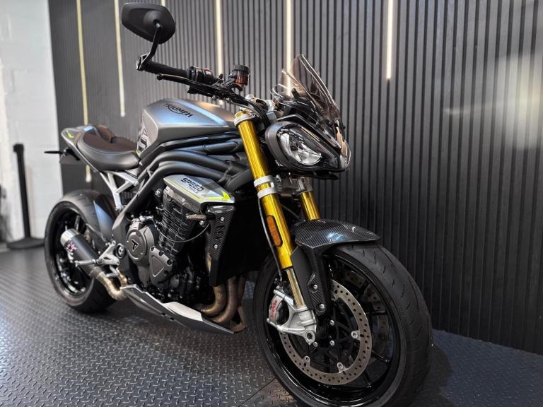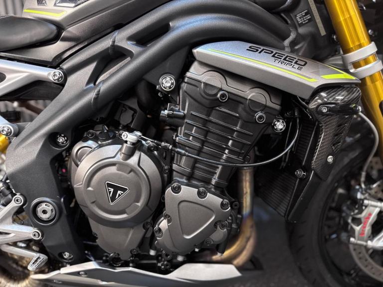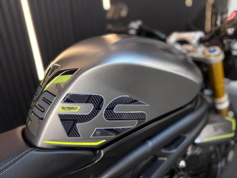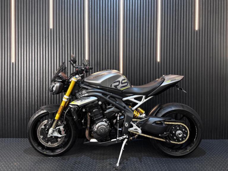 Silver, 24/7 ONLINE PURCHASE AVAILABLE - For sale is this breathtaking 2022 Triumph Speed Triple 1200 RS, finished in the premium and stealthy Matt Silver Ice. This machine has covered just 5,478 miles and is in showroom condition, perfectly showcasing the carbon fiber front mudguard and the high-end finishing that defines the RS trim. As a 2022 model, it sits at the pinnacle of Triumph?s naked range, offering a savage power-to-weight ratio. For your complete peace of mind, it has just received a fresh oil and filter change along with a full general inspection by our technicians. It comes complete with two keys (including the keyless ignition fob) and all relevant documentation. The Triumph Speed Triple 1200 RS is the definitive choice for the rider who wants the absolute best in British engineering and performance. It is powered by an all-new 1160cc triple-cylinder engine, delivering a staggering 177 BHP and a torque curve that is broad, linear, and addictive. What sets the 1200 RS apart is its top-tier componentry; it comes factory-fitted with Öhlins NIX30 inverted forks, an Öhlins TTX36 rear shock, and incredible Brembo Stylema monoblock brakes. The 2022 model is packed with cutting-edge tech, including an up-and-down Quickshifter, a 5-inch TFT display with My Triumph connectivity, and a 6-axis IMU that manages Cornering ABS and Traction Control. With its narrow profile, light-action slipper clutch, and that unmistakable three-cylinder howl, the Speed Triple 1200 RS remains the definitive choice for the rider seeking an elite-level naked bike that is as capable on the racetrack as it is on the road.***Rest assured, your new bike includes a 3-month warranty (extension options available) and is guaranteed to have at least 6 months remaining on the MOT. Making your purchase simple: Explore our flexible finance plans and benefit from our affordable nationwide delivery service. Important Note on Viewing: Stock moves quickly! If you are planning to view a particular model, we kindly ask that you call us first to confirm its availability and avoid any disappointment***, 4 owners, ABS, Electric start, Tail Tidy, Please visit our website to buy online, apply for finance or find out about our delivery prices.