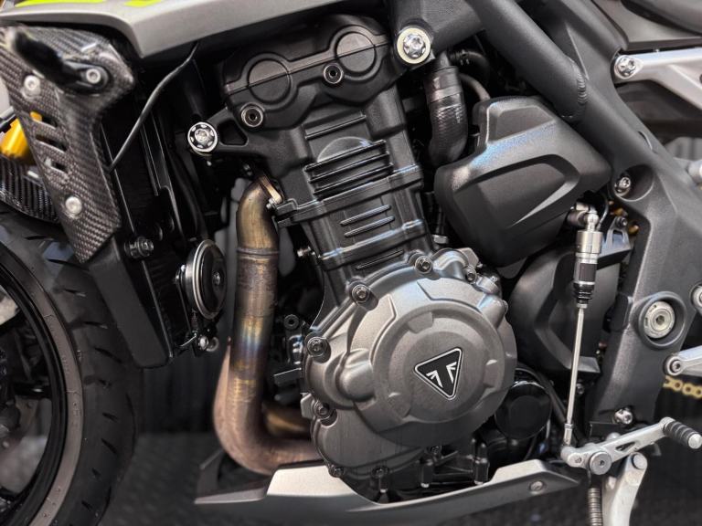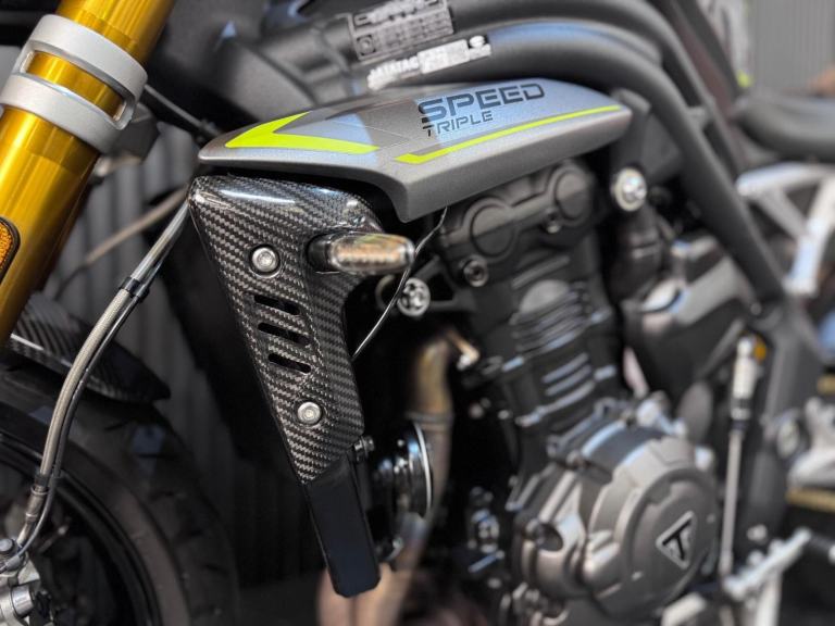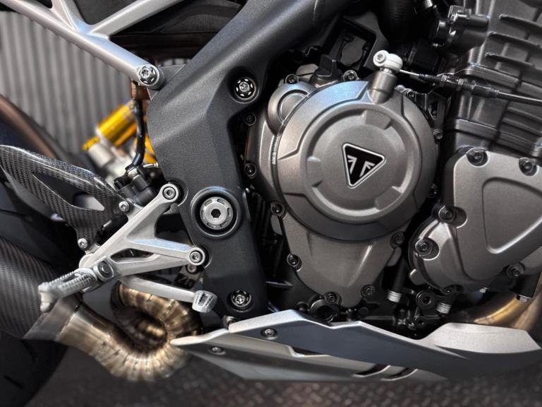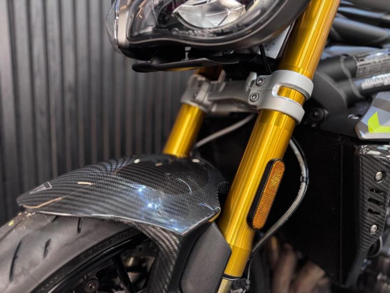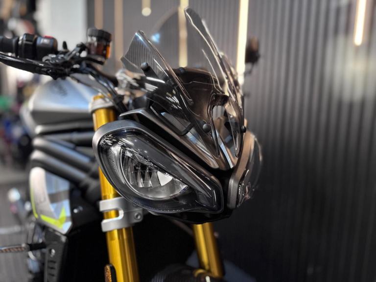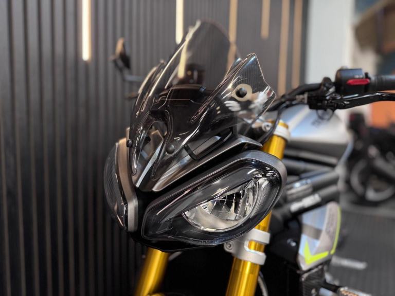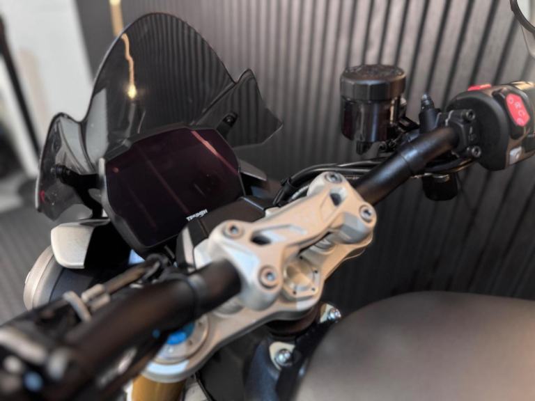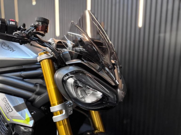Silver, 24/7 ONLINE PURCHASE AVAILABLE - For sale is this breathtaking 2022 Triumph Speed Triple 1200 RS, finished in the premium and stealthy Matt Silver Ice. This machine has covered just 5,478 miles and is in showroom condition, perfectly showcasing the carbon fiber front mudguard and the high-end finishing that defines the RS trim. As a 2022 model, it sits at the pinnacle of Triumph?s naked range, offering a savage power-to-weight ratio. For your complete peace of mind, it has just received a fresh oil and filter change along with a full general inspection by our technicians. It comes complete with two keys (including the keyless ignition fob) and all relevant documentation. The Triumph Speed Triple 1200 RS is the definitive choice for the rider who wants the absolute best in British engineering and performance. It is powered by an all-new 1160cc triple-cylinder engine, delivering a staggering 177 BHP and a torque curve that is broad, linear, and addictive. What sets the 1200 RS apart is its top-tier componentry; it comes factory-fitted with Öhlins NIX30 inverted forks, an Öhlins TTX36 rear shock, and incredible Brembo Stylema monoblock brakes. The 2022 model is packed with cutting-edge tech, including an up-and-down Quickshifter, a 5-inch TFT display with My Triumph connectivity, and a 6-axis IMU that manages Cornering ABS and Traction Control. With its narrow profile, light-action slipper clutch, and that unmistakable three-cylinder howl, the Speed Triple 1200 RS remains the definitive choice for the rider seeking an elite-level naked bike that is as capable on the racetrack as it is on the road.***Rest assured, your new bike includes a 3-month warranty (extension options available) and is guaranteed to have at least 6 months remaining on the MOT. Making your purchase simple: Explore our flexible finance plans and benefit from our affordable nationwide delivery service. Important Note on Viewing: Stock moves quickly! If you are planning to view a particular model, we kindly ask that you call us first to confirm its availability and avoid any disappointment***, 4 owners, ABS, Electric start, Tail Tidy, Please visit our website to buy online, apply for finance or find out about our delivery prices.