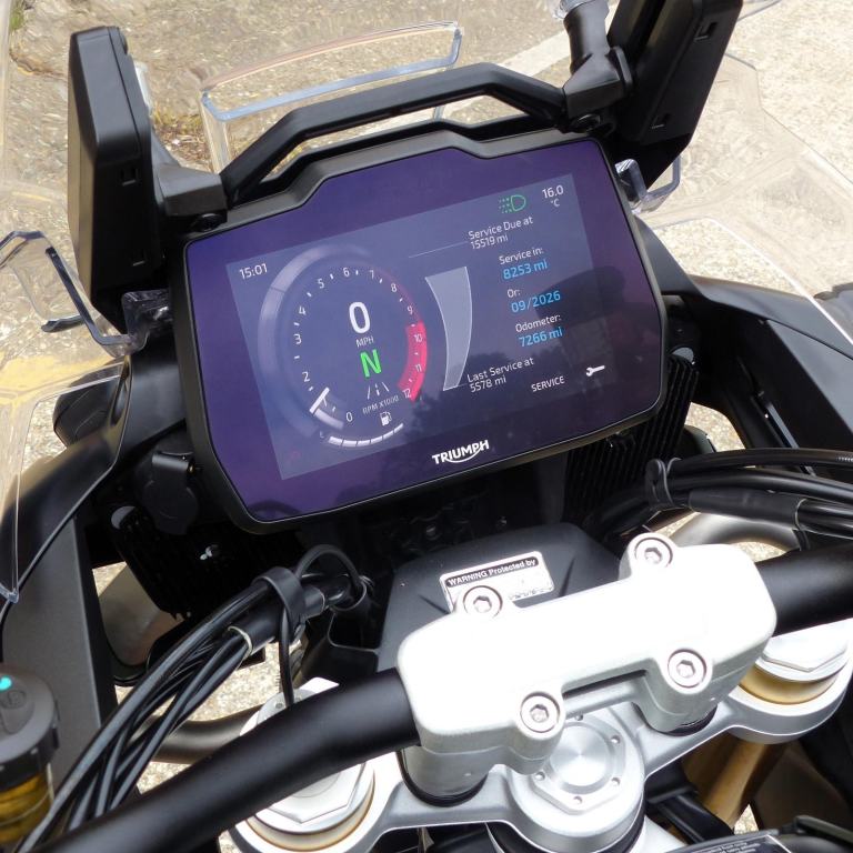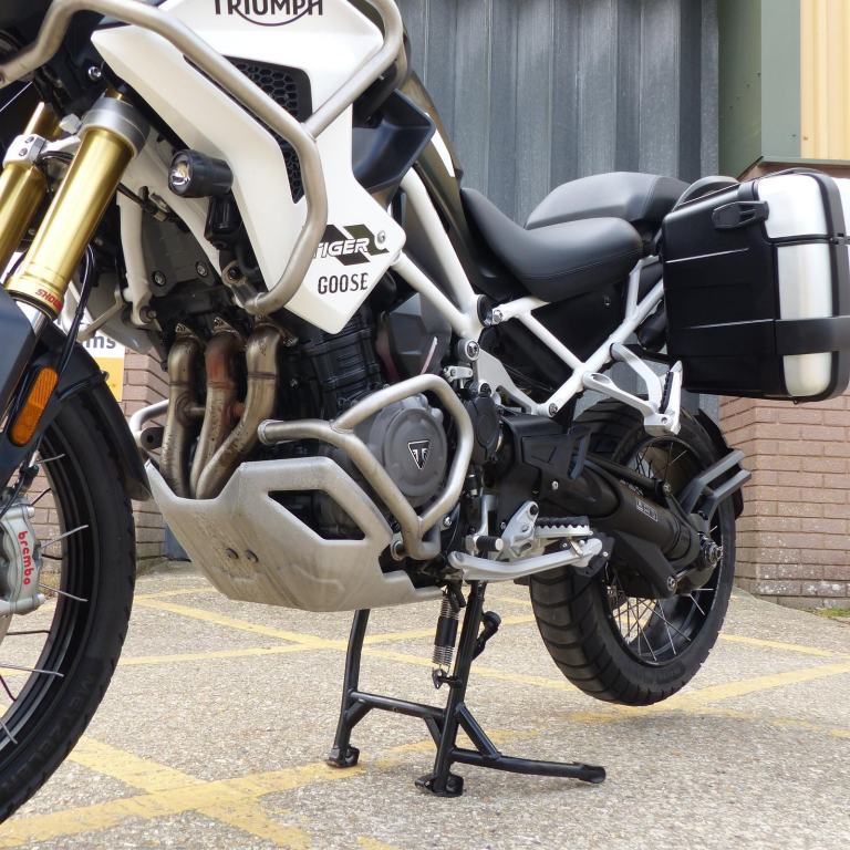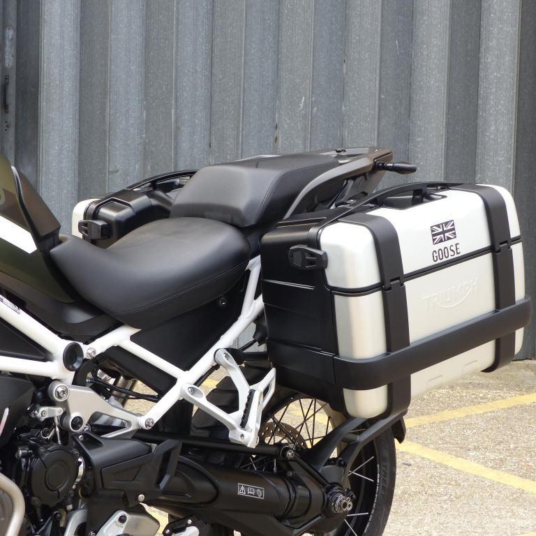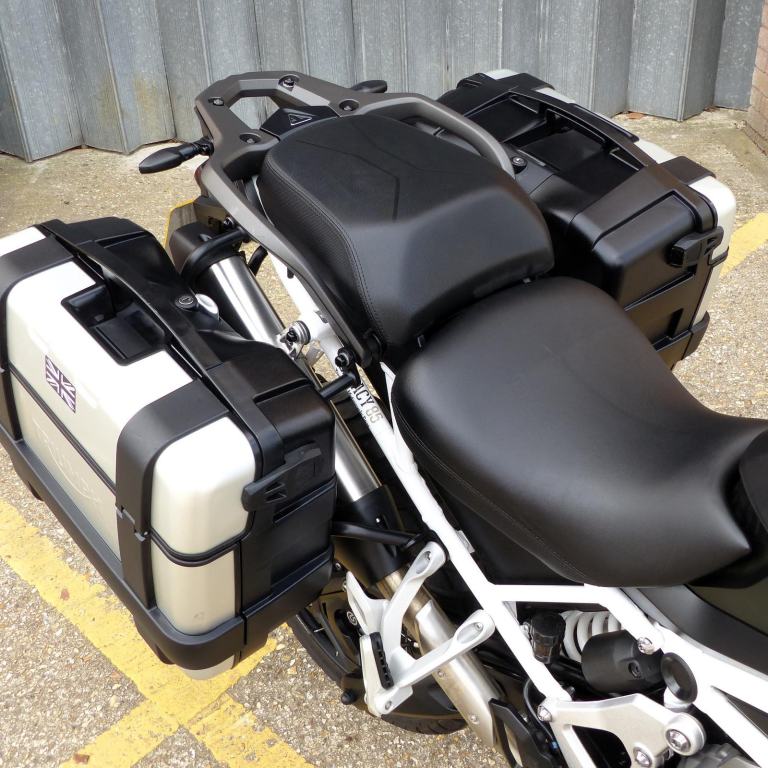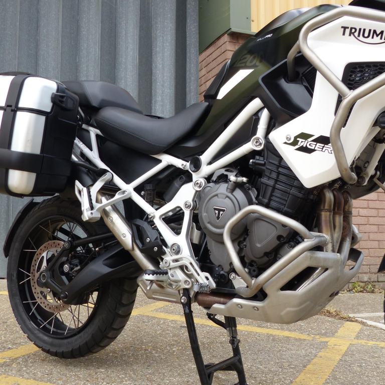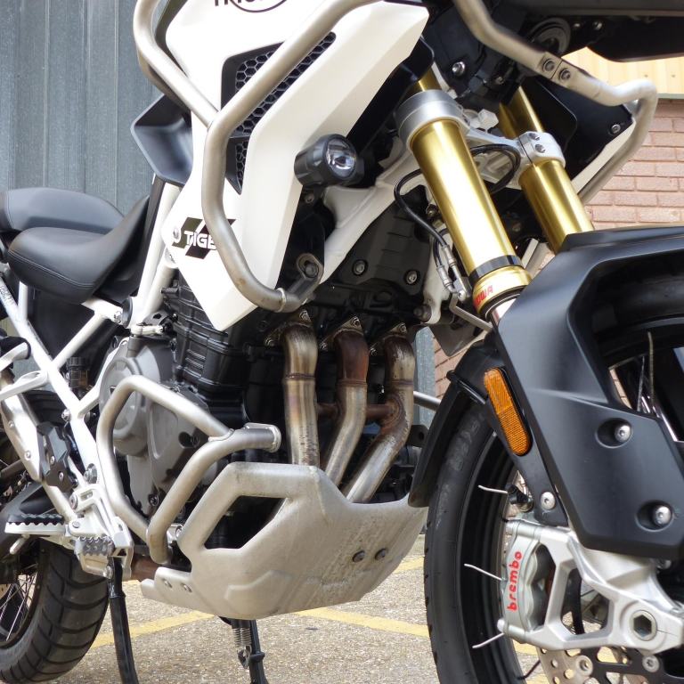 Included with the bike are Triumph upper and lower engine bars, spotlights and Triumph panniers. It also comes with the owner’s pack and service book with supporting service invoices, the master key plus a spare, and the V5 logbook. The bike is, of course, HPI clear and will be supplied with a 3 month guarantee. The current MOT runs until October 2026.