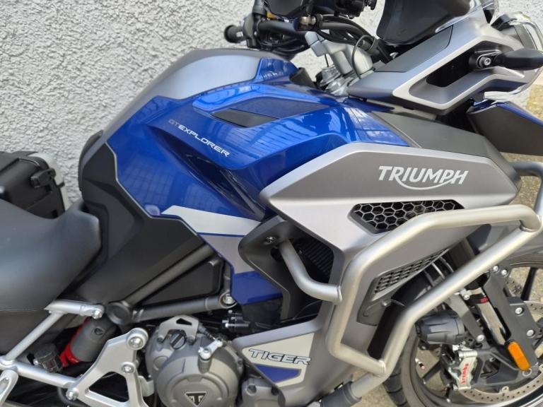 Triumph Tiger 1200 GT Explorer 10767 miles 2022 22 regFull Triumph panniers, Shift assist, Spot lights, Engine bars, Handguards, Sump guard, Electronic suspension, Cruise control, Tyre pressure monitors, Keyless ignition, Hill hold assist, Colour TFT Dash, Heated grips, Heated seats and riders modes. Adjustable riders seat.