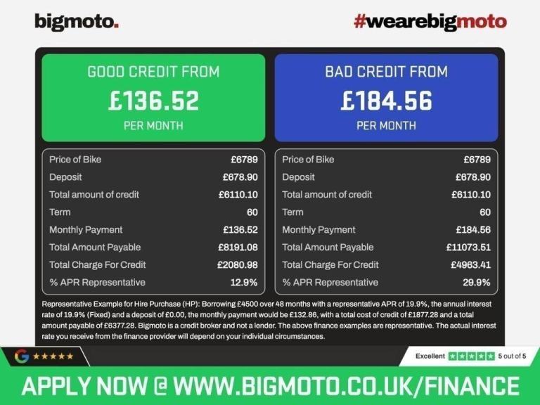 UK’s fastest growing online dealership, providing used and new motorcycles through the UK. Buy online or visit instore, offering finance options on all bikes whether you’ve got good or poor credit, Bigmoto can find a solution to help. We aim to be a price leader on all our stock so if you’ve seen it cheaper with similar mileage let us know. We offer UK nationwide delivery, full walk around videos on request of all bikes, so get in touch, we’re waiting to help you! Join the movement #wearebigmoto