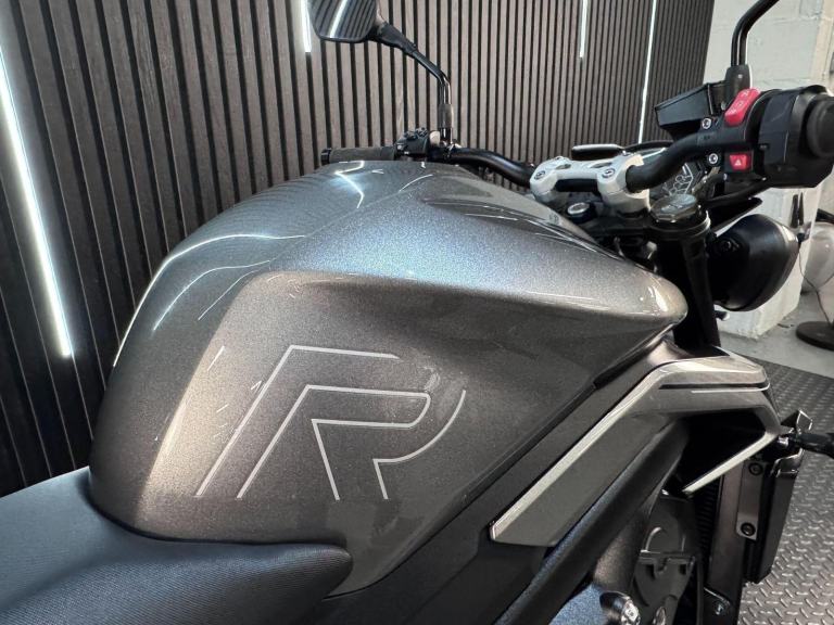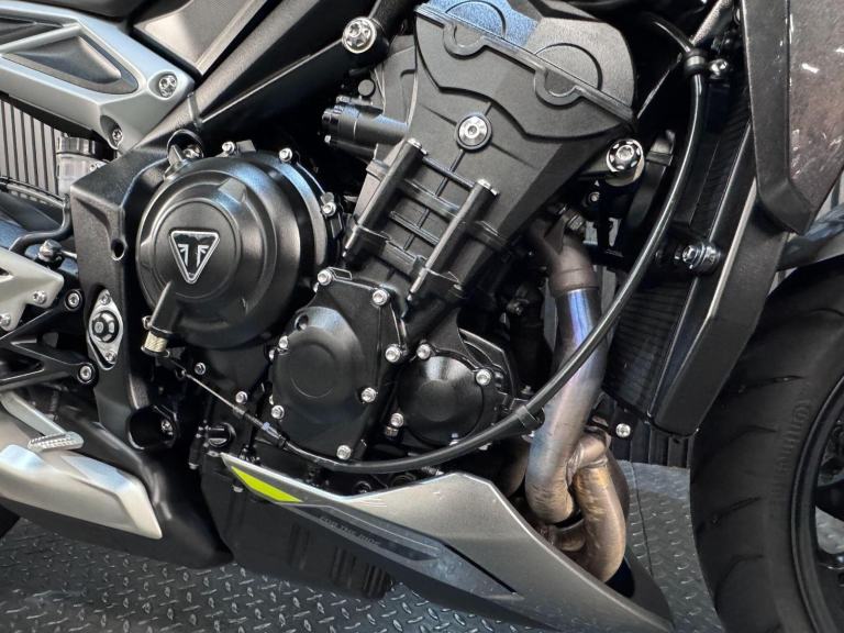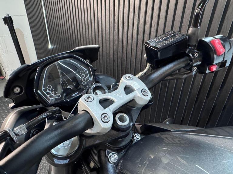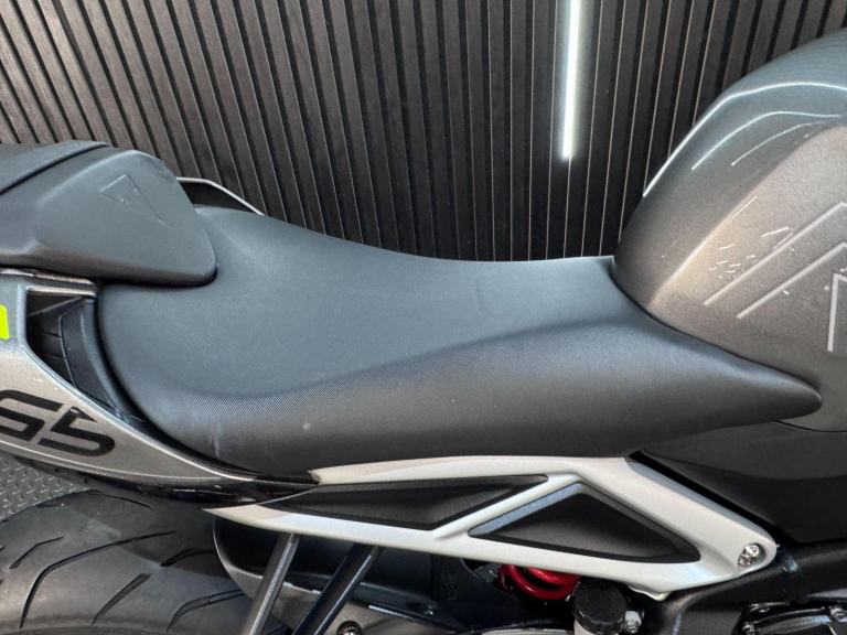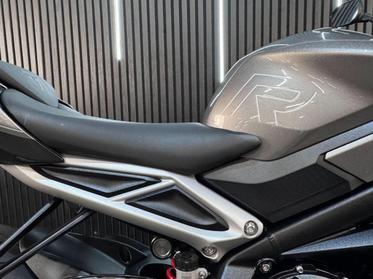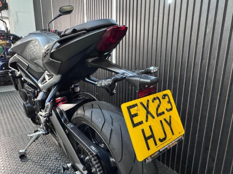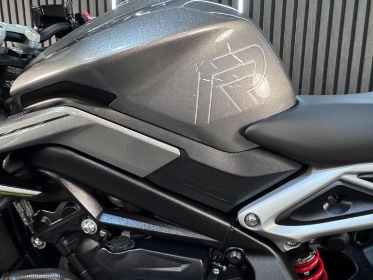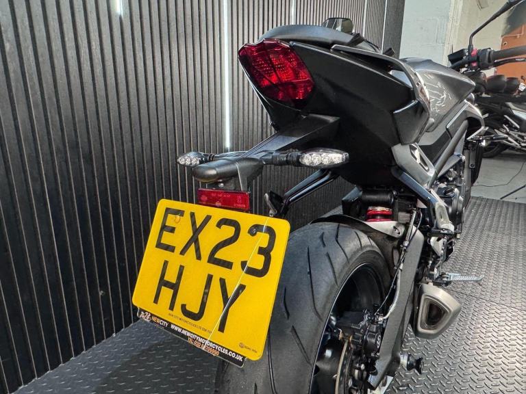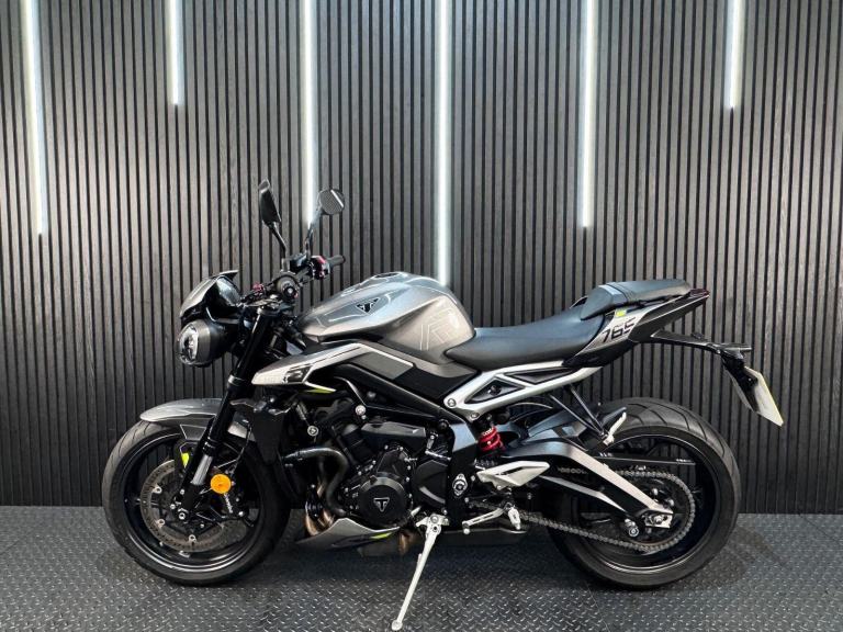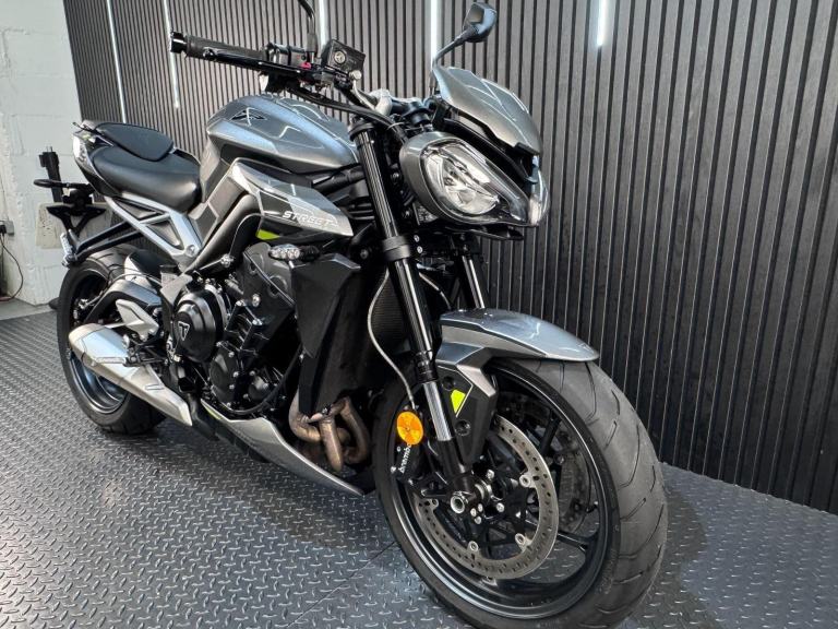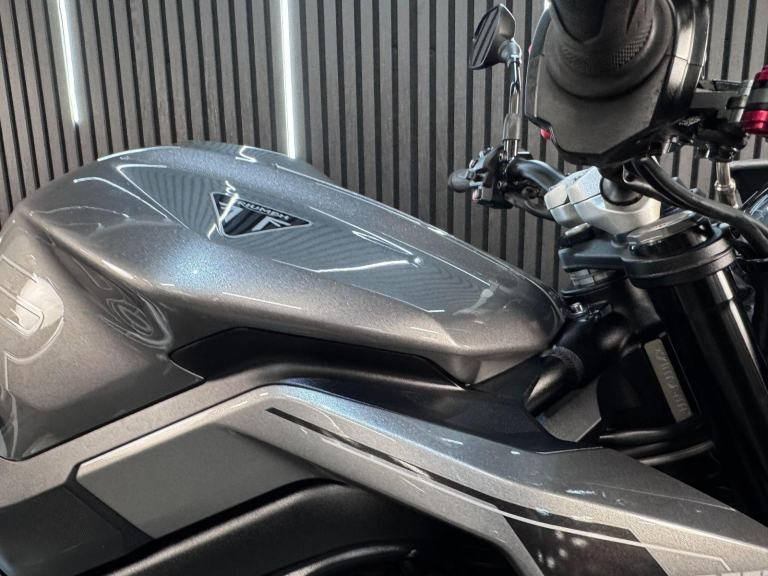 Silver, 24/7 ONLINE PURCHASE AVAILABLE - This 2023 Triumph Street Triple 765 R is the latest, most advanced evolution of the world?s most acclaimed middleweight naked bike, finished in a sleek and modern Silver Ice. With a remarkably low 3,070 miles on the clock, this bike is in good overall condition and has been professionally prepared for its next owner with a comprehensive general inspection, a new oil filter, and a fresh oil change. It comes complete with two original keys and features a high-performance X-ring chain, ensuring smooth power delivery and maximum durability for its high-torque triple engine. The 2023 ''765'' generation received significant factory upgrades, making it the most powerful and technologically advanced Street Triple R to date. It is powered by a 765cc three-cylinder engine derived directly from Triumph?s Moto2? racing development, which for this model year saw a boost in torque and responsiveness. The engine is famous for its unique ''triple'' character?offering the perfect blend of low-down grunt and a screaming top-end rush, all delivered with an intoxicating intake howl that is unique to the British marque. As a Euro 5 compliant machine, this 765 R is packed with high-end rider technology, including a sophisticated six-axis IMU that governs Cornering ABS and switchable Optimised Cornering Traction Control.***Rest assured, your new bike includes a 3-month warranty (extension options available) and is guaranteed to have at least 6 months remaining on the MOT. Making your purchase simple: Explore our flexible finance plans and benefit from our affordable nationwide delivery service. Important Note on Viewing: Stock moves quickly! If you are planning to view a particular model, we kindly ask that you call us first to confirm its availability and avoid any disappointment***, 1 owners, 2 keys, ABS, Electric start, Rear Hugger, Stainless Exhaust, Please visit our website to buy online, apply for finance or find out about our delivery prices.