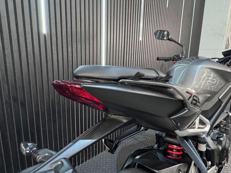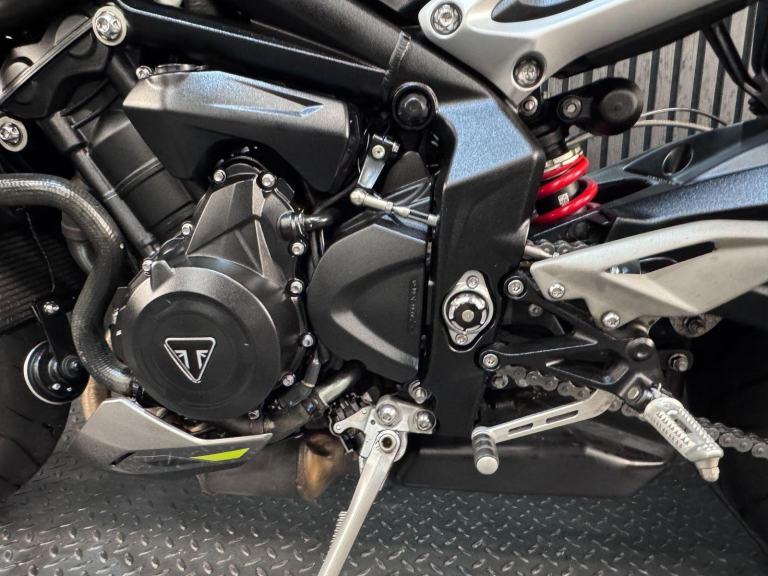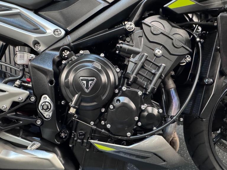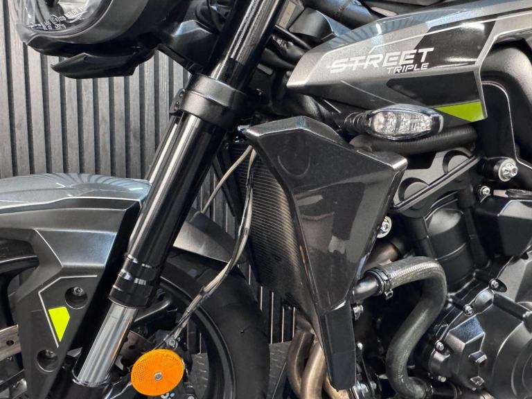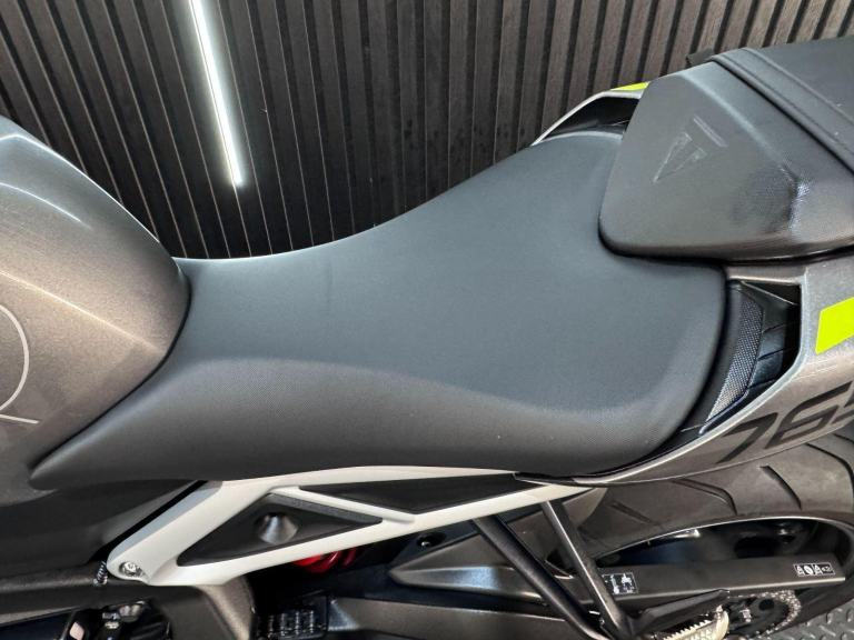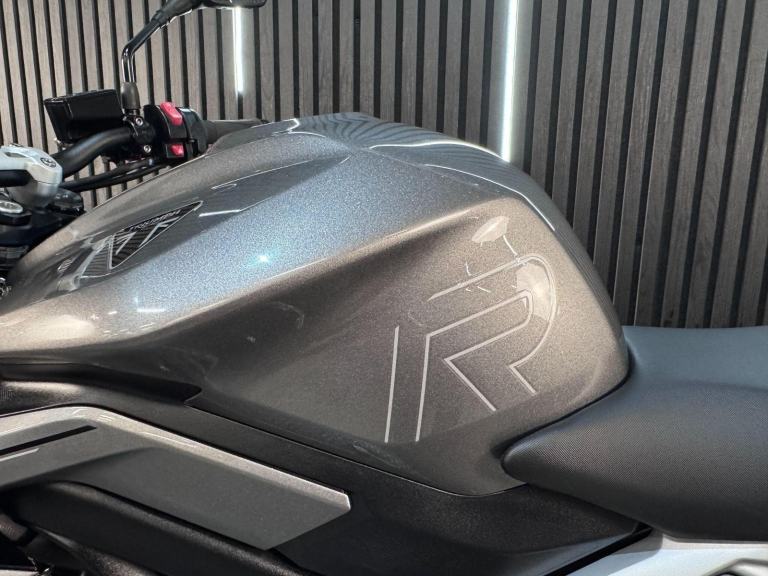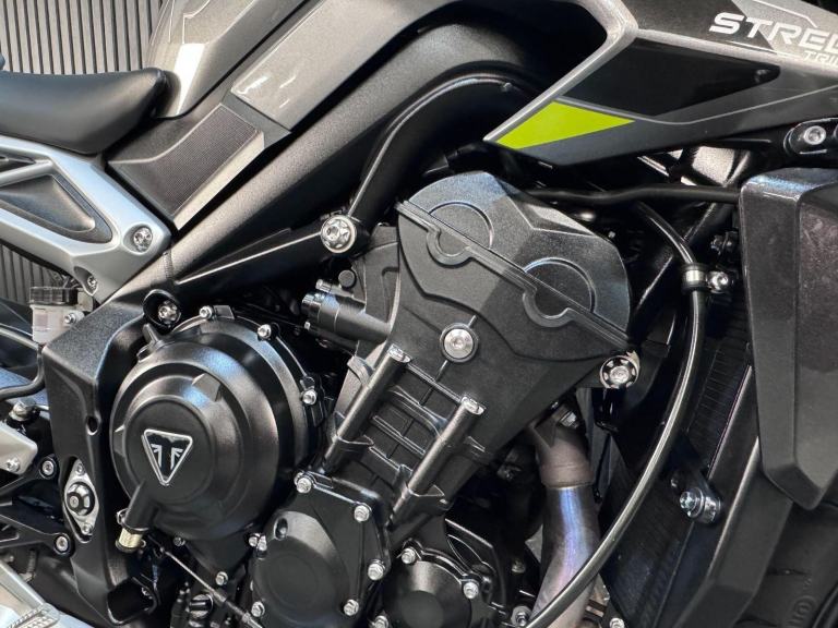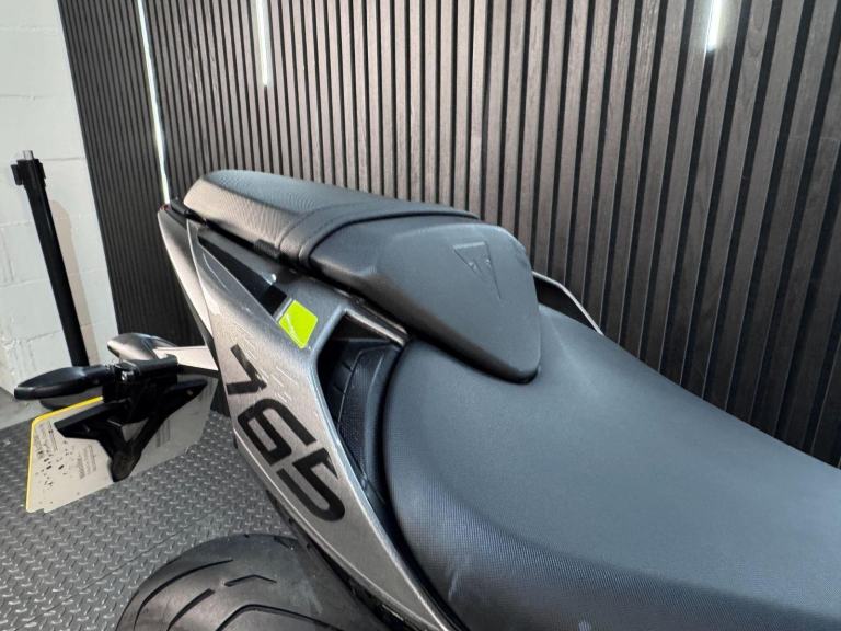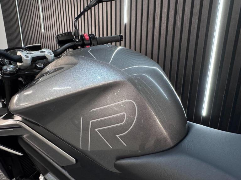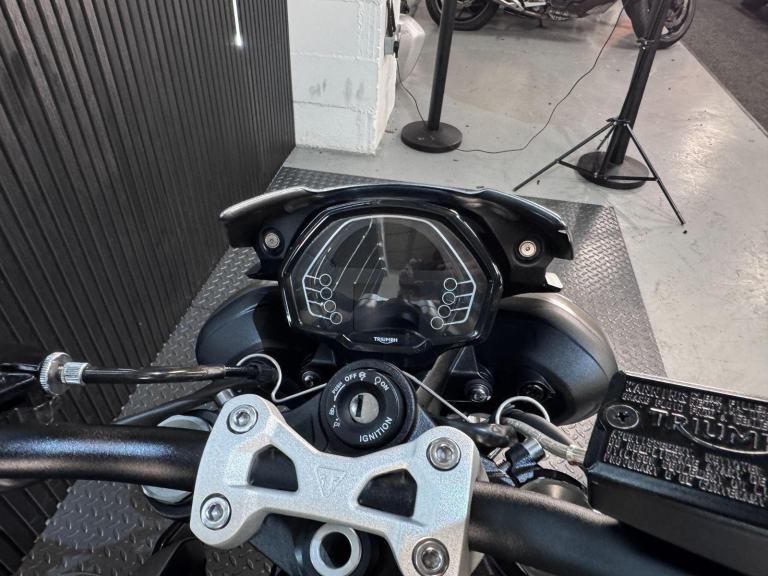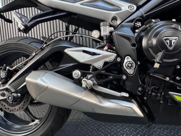Silver, 24/7 ONLINE PURCHASE AVAILABLE - This 2023 Triumph Street Triple 765 R is the latest, most advanced evolution of the world?s most acclaimed middleweight naked bike, finished in a sleek and modern Silver Ice. With a remarkably low 3,070 miles on the clock, this bike is in good overall condition and has been professionally prepared for its next owner with a comprehensive general inspection, a new oil filter, and a fresh oil change. It comes complete with two original keys and features a high-performance X-ring chain, ensuring smooth power delivery and maximum durability for its high-torque triple engine. The 2023 ''765'' generation received significant factory upgrades, making it the most powerful and technologically advanced Street Triple R to date. It is powered by a 765cc three-cylinder engine derived directly from Triumph?s Moto2? racing development, which for this model year saw a boost in torque and responsiveness. The engine is famous for its unique ''triple'' character?offering the perfect blend of low-down grunt and a screaming top-end rush, all delivered with an intoxicating intake howl that is unique to the British marque. As a Euro 5 compliant machine, this 765 R is packed with high-end rider technology, including a sophisticated six-axis IMU that governs Cornering ABS and switchable Optimised Cornering Traction Control.***Rest assured, your new bike includes a 3-month warranty (extension options available) and is guaranteed to have at least 6 months remaining on the MOT. Making your purchase simple: Explore our flexible finance plans and benefit from our affordable nationwide delivery service. Important Note on Viewing: Stock moves quickly! If you are planning to view a particular model, we kindly ask that you call us first to confirm its availability and avoid any disappointment***, 1 owners, 2 keys, ABS, Electric start, Rear Hugger, Stainless Exhaust, Please visit our website to buy online, apply for finance or find out about our delivery prices.