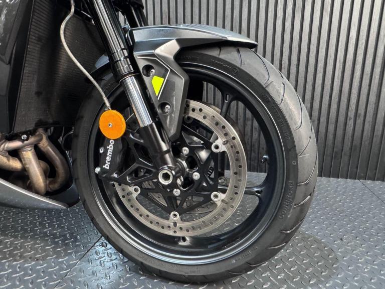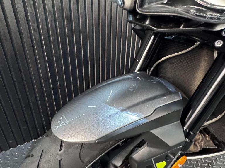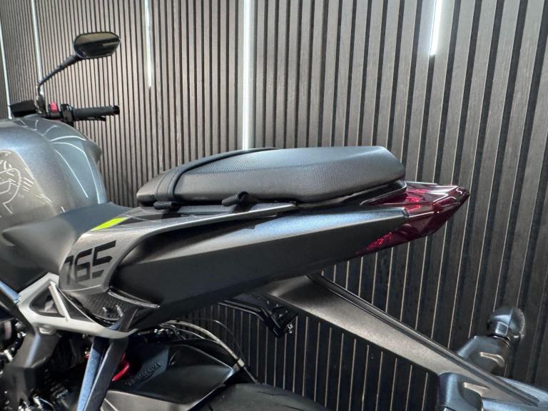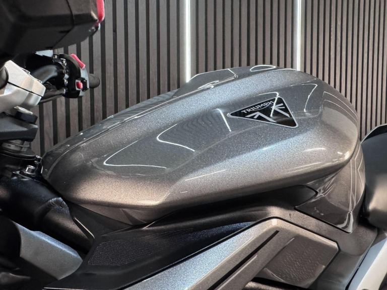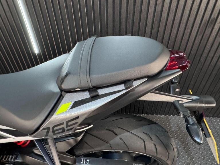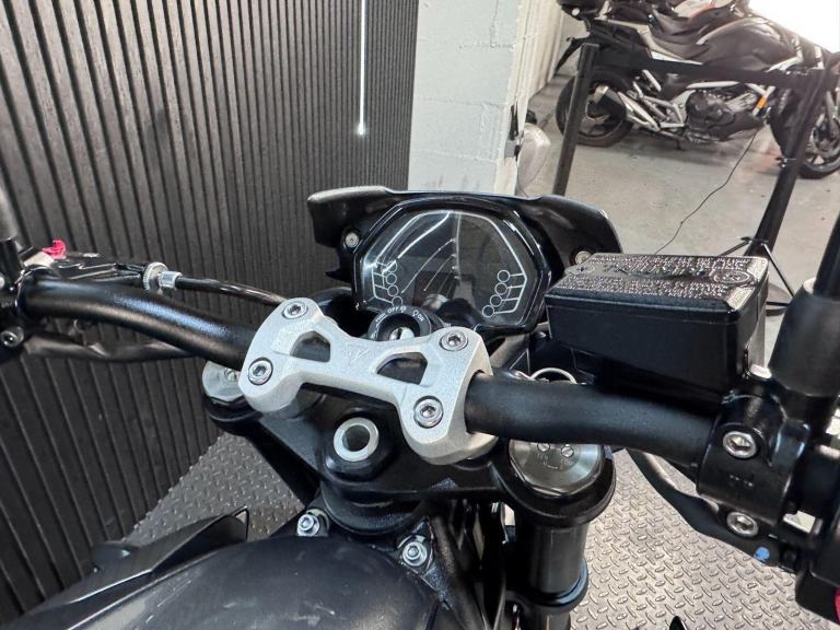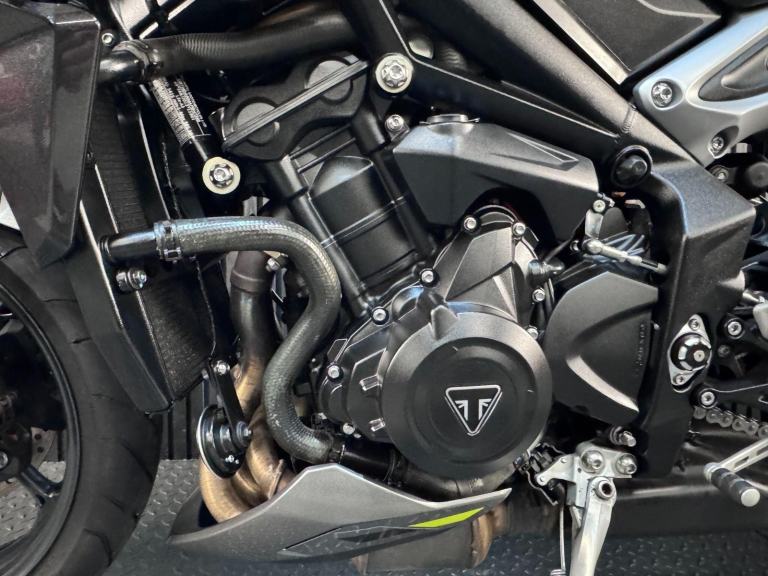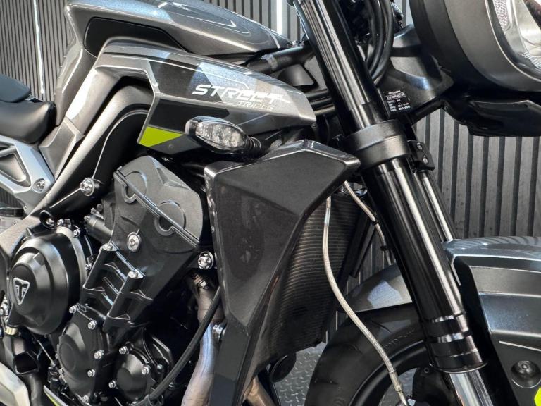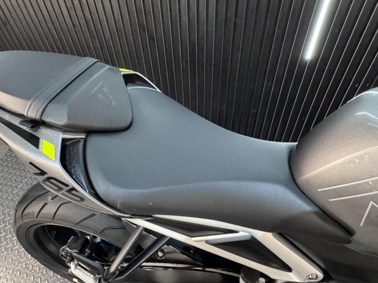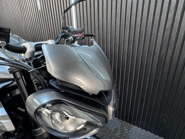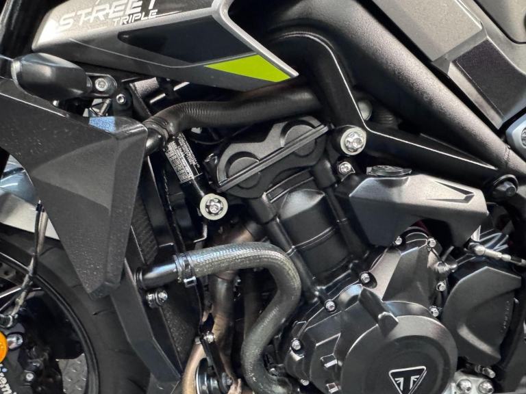 Silver, 24/7 ONLINE PURCHASE AVAILABLE - This 2023 Triumph Street Triple 765 R is the latest, most advanced evolution of the world?s most acclaimed middleweight naked bike, finished in a sleek and modern Silver Ice. With a remarkably low 3,070 miles on the clock, this bike is in good overall condition and has been professionally prepared for its next owner with a comprehensive general inspection, a new oil filter, and a fresh oil change. It comes complete with two original keys and features a high-performance X-ring chain, ensuring smooth power delivery and maximum durability for its high-torque triple engine. The 2023 ''765'' generation received significant factory upgrades, making it the most powerful and technologically advanced Street Triple R to date. It is powered by a 765cc three-cylinder engine derived directly from Triumph?s Moto2? racing development, which for this model year saw a boost in torque and responsiveness. The engine is famous for its unique ''triple'' character?offering the perfect blend of low-down grunt and a screaming top-end rush, all delivered with an intoxicating intake howl that is unique to the British marque. As a Euro 5 compliant machine, this 765 R is packed with high-end rider technology, including a sophisticated six-axis IMU that governs Cornering ABS and switchable Optimised Cornering Traction Control.***Rest assured, your new bike includes a 3-month warranty (extension options available) and is guaranteed to have at least 6 months remaining on the MOT. Making your purchase simple: Explore our flexible finance plans and benefit from our affordable nationwide delivery service. Important Note on Viewing: Stock moves quickly! If you are planning to view a particular model, we kindly ask that you call us first to confirm its availability and avoid any disappointment***, 1 owners, 2 keys, ABS, Electric start, Rear Hugger, Stainless Exhaust, Please visit our website to buy online, apply for finance or find out about our delivery prices.