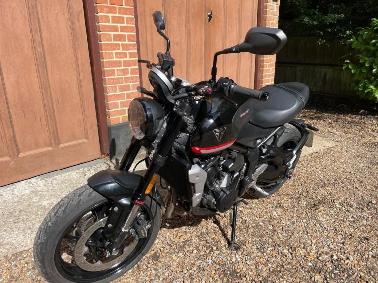 A very nice example of this out standing middleweight in excellent condition with One Owner from new and a Full Triumph Service History. Last Serviced on 25/06/2025. MOT 10/05/2026. Extras include, a Quick Shifter, Triumph Crash Protection and Triumph Sports Levers. A very exciting, spirited, well-mannered, easy to use bike . With plenty of power and excellent handling . The colour TFT screen contains a clock, trip meter, gear position, set-up menus and when used with Triumph's app displays turn-by-turn sat nav, music and call functions as well as LED lighting self-cancelling indicators, an immobiliser and lightweight five spoke alloy wheels . Supplied with Service book , Handbook, Datatag and spare key.
