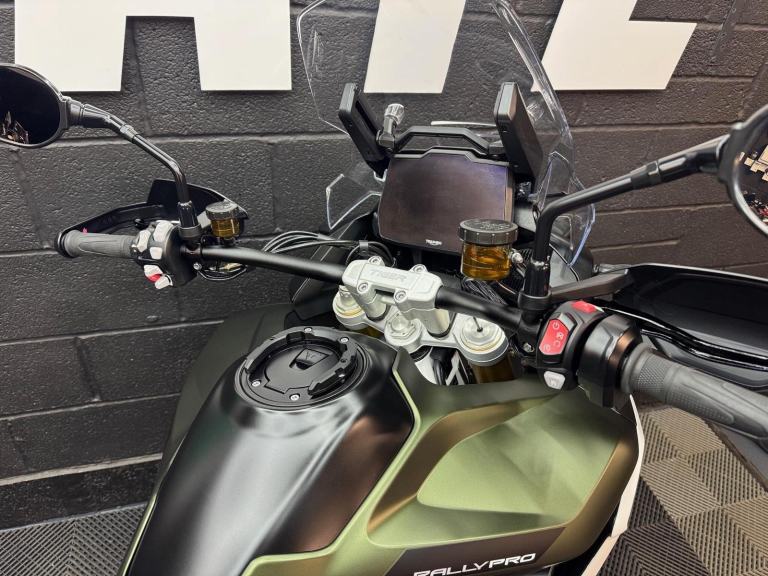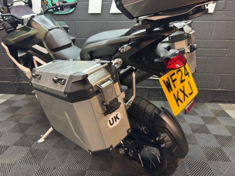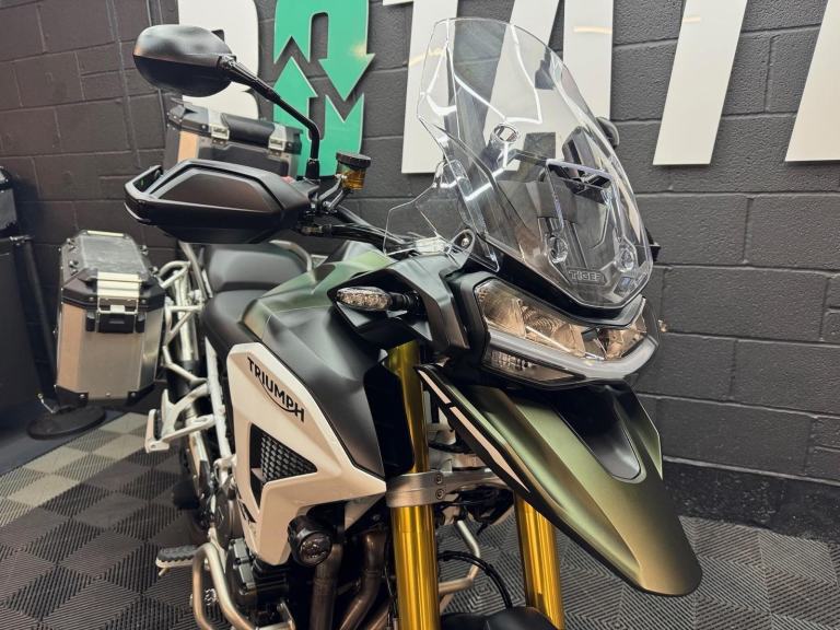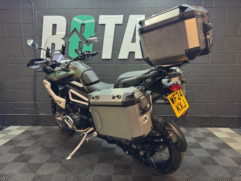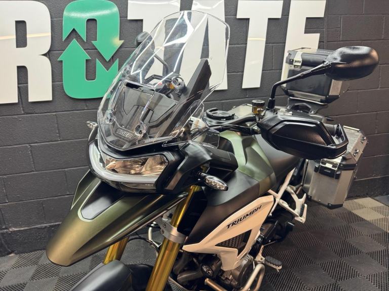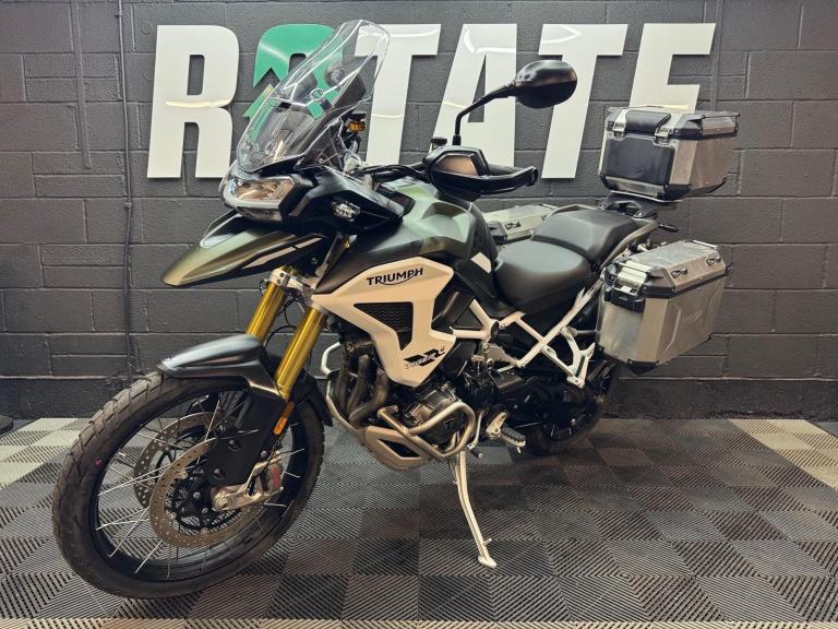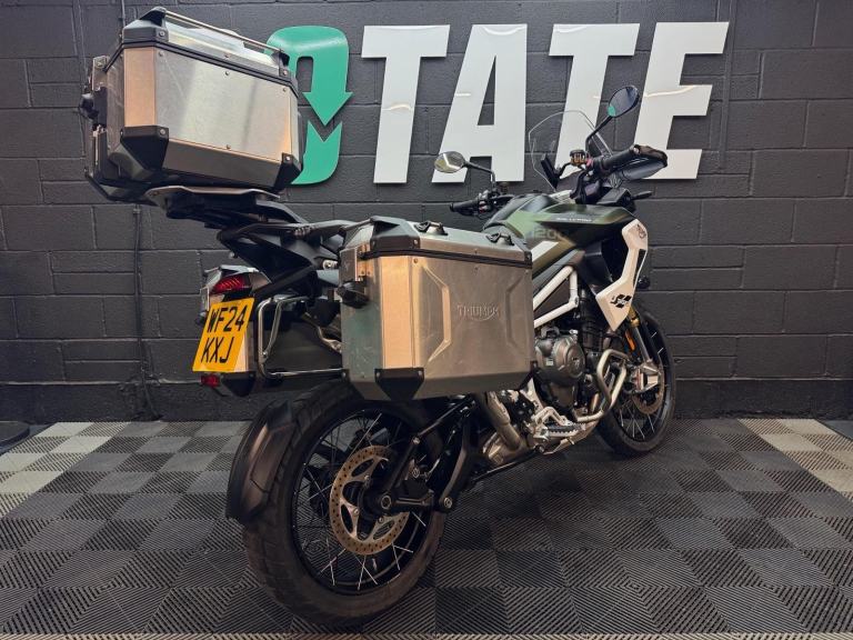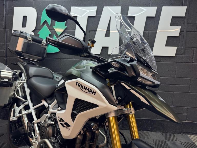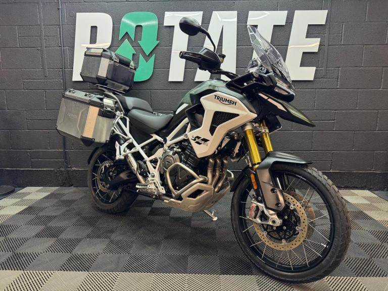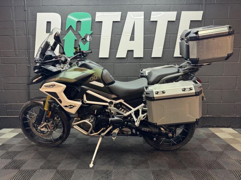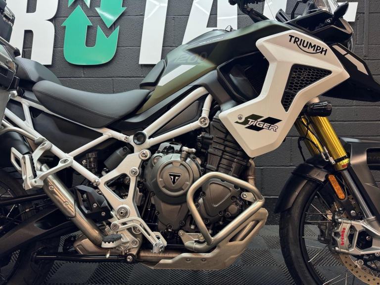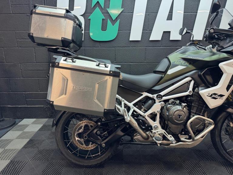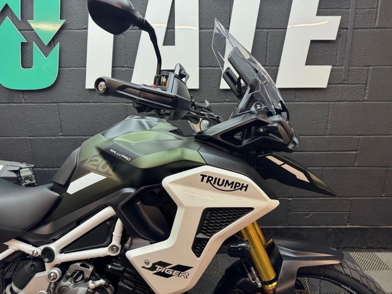 Green, 2024 Triumph Tiger 1200 Rally Pro, Registered March 2024 (24 Plate), 1 Owner from new, 3,339 Miles only, Full service history, Immaculate condition, HPI Clear, 3 Months warranty included, All keys & manuals included, V5 present, Stunning metallic colour scheme, *All used vehicles pass a full 60 point health check*, First MOT Due March 2027, Great accessories fitted including: Heated Grips / Heated Front Seat / Full Stainless Luggage / Crash Bars / Hand Guards / Centre Stand / Spot Lights / Sump Guard ........ Part exchange welcome.......Finance [Website URL removed] delivery available...... Please don't hesitate to call Ross for more information........ Viewing by appointment only ? 7 Days a week, Secure now with a £100.00 fully refundable deposit!!!! Please follow us on Instagram or Facebook and stay up to date with Rotate Motorsport?.***Apply For Finance Now Through My Website*** All major credit and debit cards accepted. Please visit my website for more information & to view current full stock list, [Website URL removed] Buy with confidence, I?m a 5 star reviewed dealer as I am a small family run business with over 15 years main dealer experience, Please see Autotrader customer reviews for peace of mind., 0 owners, 2 keys, ABS, Centre Stand, Crash Bars, Cruise Control, Electric start, Engine Bars, Hand Guards, Heated Grips, Heated Seats, LED Indicators, Low Seat height, Panniers, Rear Hugger, Stainless Exhaust, Tail Tidy, Tank Pad, Top Box, Touring screen, Traction Control