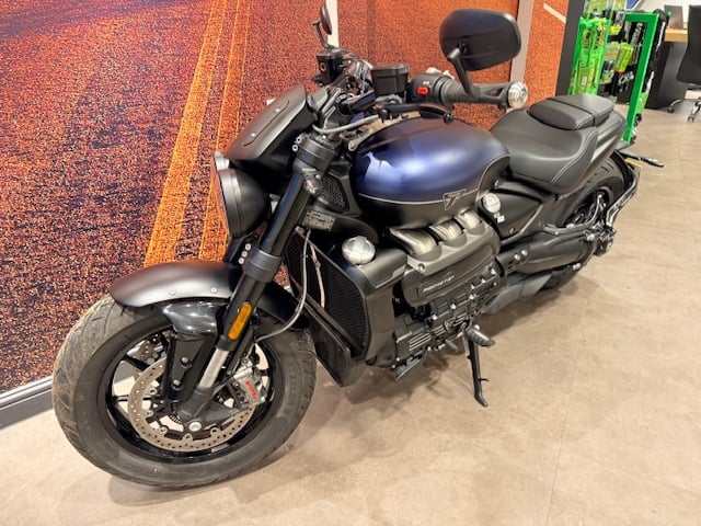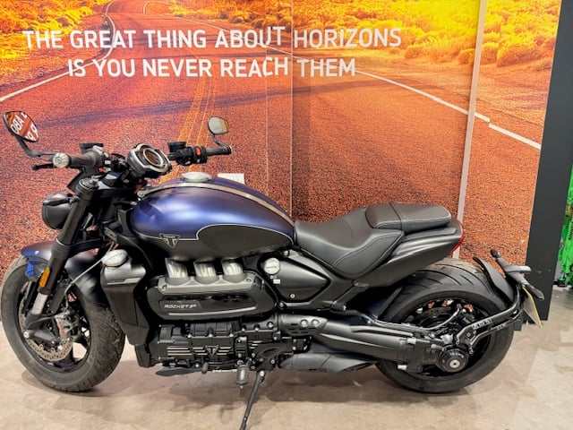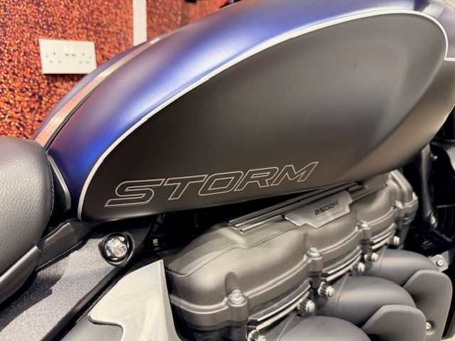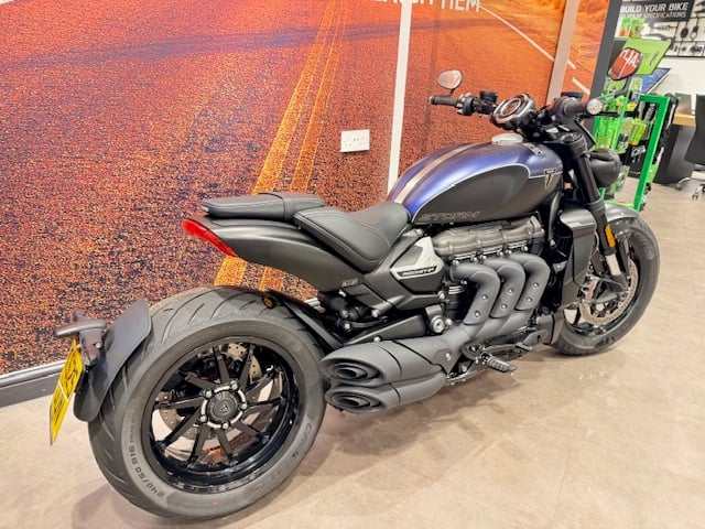 The team at Pure Triumph Woburn are proud to offer sale our 2025 demo Rocket 3 R Storm. It has only covered 654 miles and has had the first service completed. Phenomenal saving over new for very little use. There is a very small scratch on the tank, which can be seen in the pictures, you'll have to squint as it is small but we like to operate openly. Warranty runs until 2027, however up to 18 months old you can extend the Triumph warranty, addign 1 or 2 years extra.. Visit our Triumph website for further details. Pure Triumph is part of Grange, one of the fastest growing franchised vehicle retailers in the UK. We offer competitive part exchange valuations and will do all that we can to ensure you leave our nationwide dealerships as a happy guest. On our website, you can find a choice of the latest new Triumph offers and used bikes from a variety of manufacturers. We recommend booking in advance so we can ensure the bike is available and to avoid disappointment. CLICK-COLLECT-DRIVE: Reserve online today and collect it safely at our dealership or we'll deliver to your door. Come and visit us at Triumph Woburn, George St, Woburn, Milton Keynes MK17 9PY. Open Monday to Friday 9am to 6pm. Saturday 9am to 5pm and Sunday Closed. [Website URL removed]
