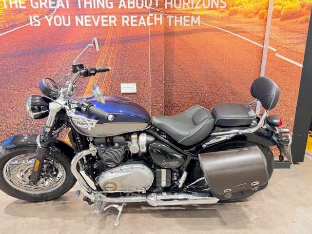 Offered for sale we have this lovely 2025 Speedmaster, provided to its first and only owner from our Wellingborough store, we have taken it in PX against a T120. It has covered 1869 miles and is fitted with genuine Triumph panniers and passenger back rest as it was often used for weekend trips 2 up. As you can see from the pictures, it is very clean and is ready to go having had the first service carried out in July. Warranty is until May 2027.. Visit our Triumph website for further details. Pure Triumph is part of Grange, one of the fastest growing franchised vehicle retailers in the UK. We offer competitive part exchange valuations and will do all that we can to ensure you leave our nationwide dealerships as a happy guest. On our website, you can find a choice of the latest new Triumph offers and used bikes from a variety of manufacturers. We recommend booking in advance so we can ensure the bike is available and to avoid disappointment. CLICK-COLLECT-DRIVE: Reserve online today and collect it safely at our dealership or we'll deliver to your door. Come and visit us at Triumph Woburn, George St, Woburn, Milton Keynes MK17 9PY. Open Monday to Friday 9am to 6pm. Saturday 9am to 5pm and Sunday Closed. [Website URL removed]