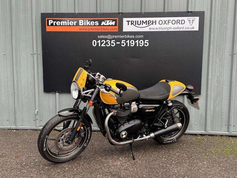 We now have this Stunning One Owner 2015/15 Triumph Street Cup. This Awesome Machine comes with Part Service History, Complete with ABS, Traction control, slip assist clutch, advanced on board computer and even a USB socket under the seat the Street Cup gives you all the modern conveniences underneath the classic café racer looks and a lovely soundtrack to match. Please ask for any additional pictures or we can also offer a personal video presentation of the bike for you. Px very welcome, UK delivery can be arranged, Finance available (subject to your status), Call our experienced sales team now on 01235 519195 or email us at [Email address removed. Click Email button to contact us.] – Thanks for looking, Check out all of our other bikes at [Website URL removed] - Not all Bikes are on site, please contact us to arrange a viewing.