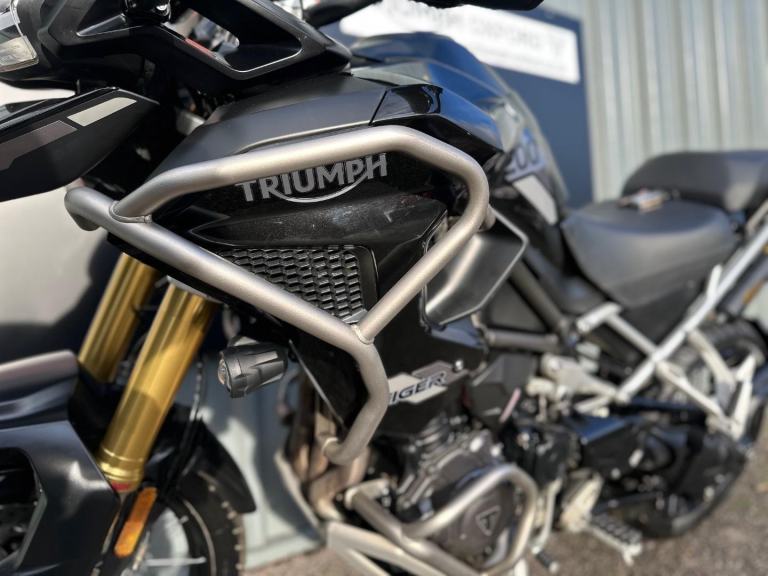 We now have this Stunning One Owner 2023/72 Triumph Tiger 1200 Rally Pro. This Highly Spec’d Machine as Standard Includes Showa 49mm Front Forks with Semi-Active Damping, Showa Rear Monoshock with Semi-Active Damping and Automatic Electronic Preload Adjustment, Adjustable Screen, Full Colour 7” TFT dash with My Triumph Connectivity System, 21” Spoked Front Wheel, Cornering Traction Control, Up to Six Riding Modes, Full LED Lighting with Adaptive Cornering Lights, Triumph Shift Assist, Heated Grips, Hill hold and on This Specific Bike there is also Upper Protection Bars, Low Rider Seat and Black Handle Bar End Finishers Fitted. Please ask for any additional pictures or we can also offer a personal video presentation of the bike for you. Px very welcome, UK delivery can be arranged, Finance available (subject to your status), Call our experienced sales team now on 01235 519195 or email us at [Email address removed. Click Email button to contact us.] – Thanks for looking, Check out all of our other bikes at [Website URL removed]