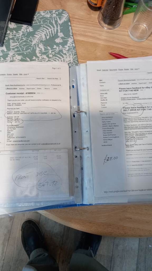 Folder full of receipts for new parts