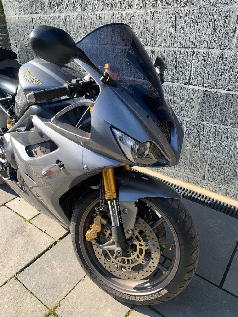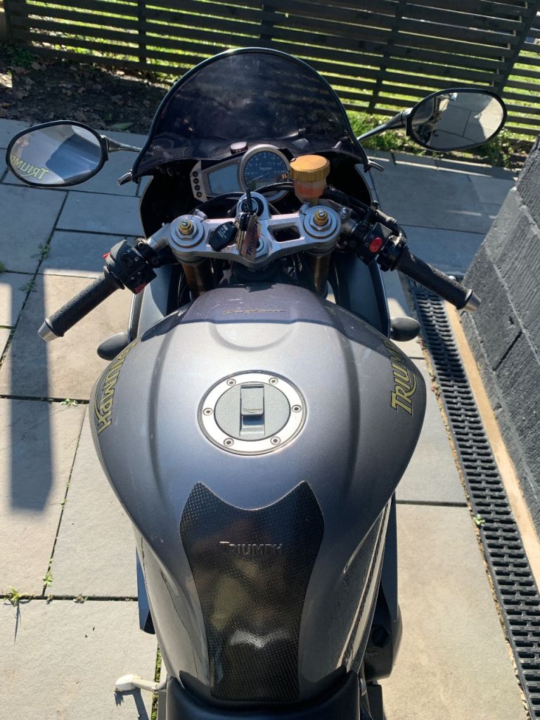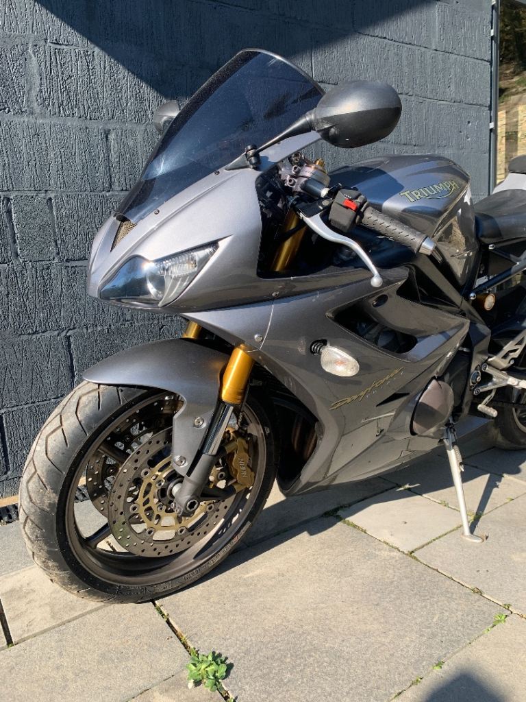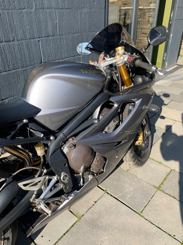 The iconic Triumph Daytona 675 one owner from new, 10500 miles, dry stored from new (caught out in the rain twice) been serviced by triumph. This bike rides like a brand new machine. New MOT, new Pirelli Diablo tyres. Bad points: some light corrosion on the aluminium foot pegs shown in photos, very light scuff on tail also shown on photo (rubbed with a rucksack but will probably T cut out)