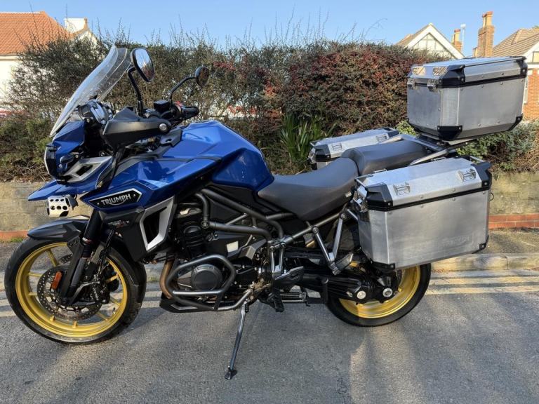 We are pleased to offer this Triumph Explorer XRX. If you are looikng for comfort and creature comforts then the XRX is the one. Powerful 1215cc Motor to shaft drive makes the bike easy to ride for you and your pillion. Looks great in Blue with poweder coated wheels. This bike has had just 4 keepers from new. Great specification: