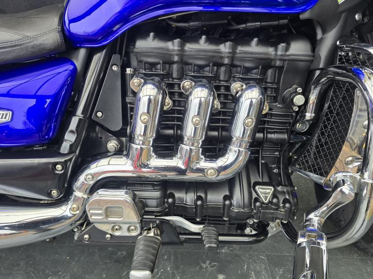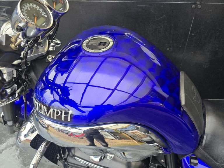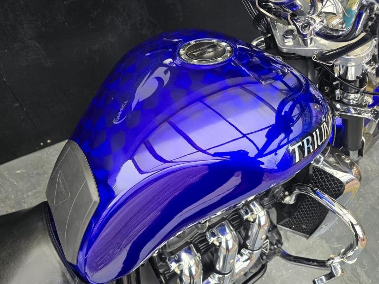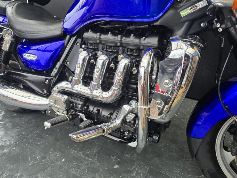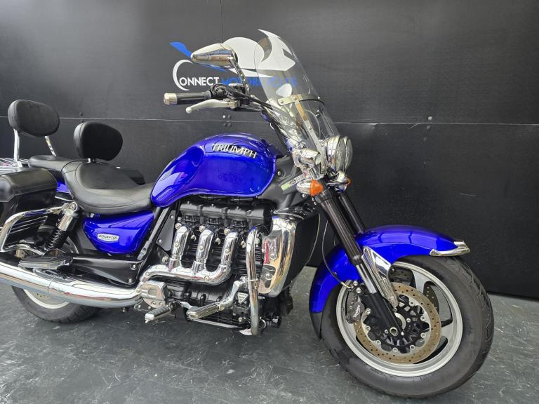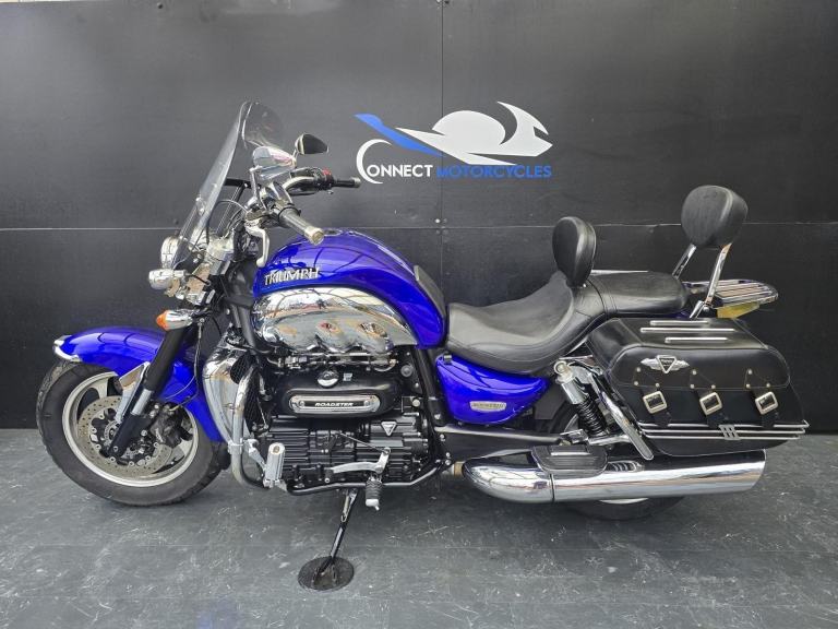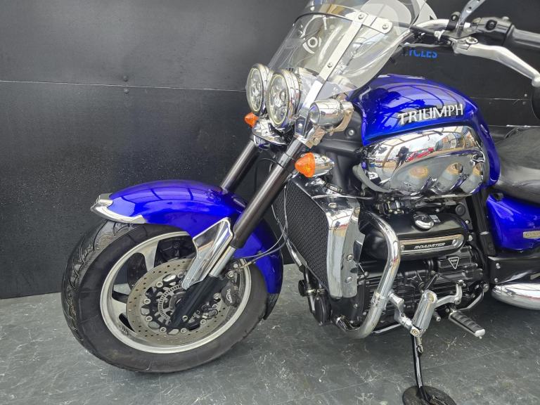 Here we have for sale a Triumph Rocket 111 Roadster in lovely condition with a subtle custom paintwork. Upon sale, this bike will be serviced at its current mileage and accompanied by a 3 month part and labour warranty. Both tyres have plenty of life left. This bike is fitted with a Touring screen & Triumph panniers. The MOT expires 13/11/2026. We have the V5, Owner's manual, service book with 8 stamps. Finance (subject to status) and extended warranty available, please ask for more details.