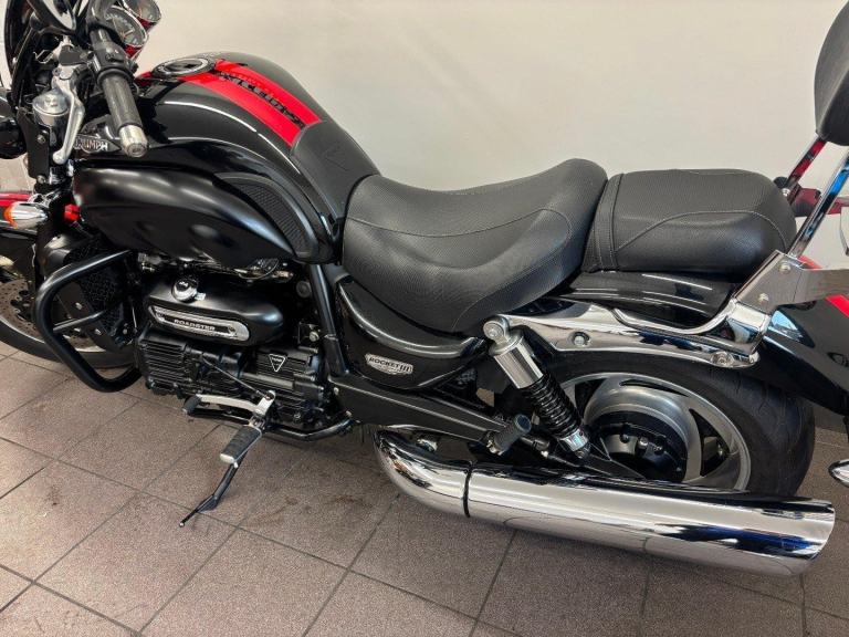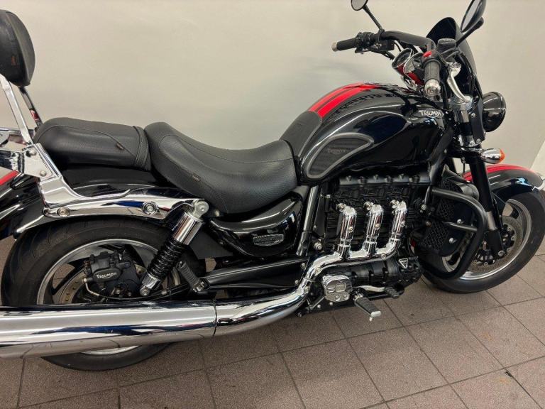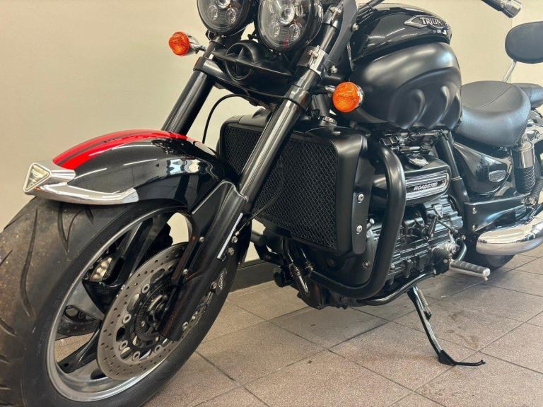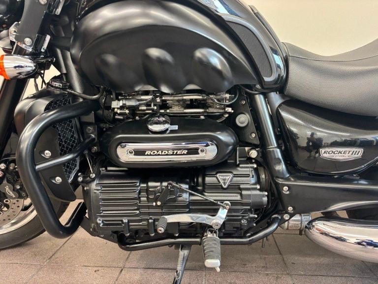 TRIUMPH ROCKET III ROADSTER, 2014 14 REG, 19,812 MILES, BLACK, USED MOTORCYCLE, 2294CC, 12 MONTHS MOT, 3 MONTHS WARRANTY, ALL ORIGINAL BOOKS & KEYS, PART SERVICE HISTORY (MAY 2014 AT 421 MILES, SEPTEMBER 2015 AT 1,220 MILES, 24/03/22 19049 MILES), RADIATOR GUARD, ENGINE BARS, REAR RACK, SISSY BAR, COMES WITH A VEHICLE HEALTH CHECK
