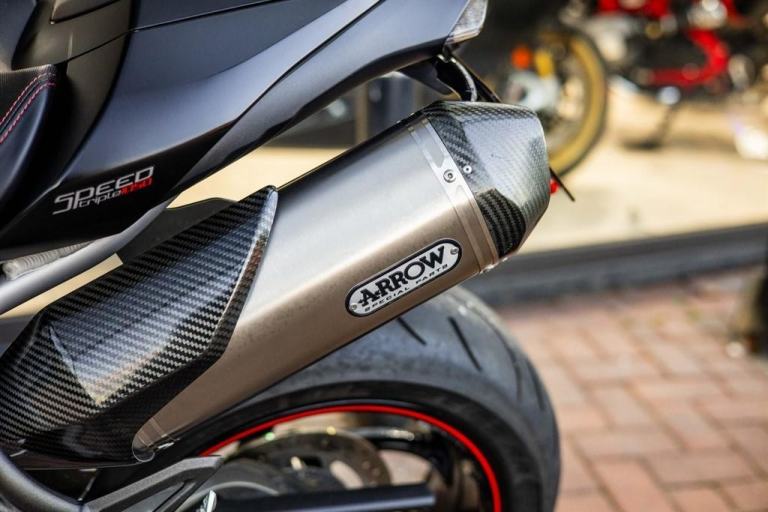 This bike is stunning finished in matt black with contrast carbon fibre including carbon mudguard, carbon side covers, carbon exhaust covers, carbon exhaust tips, this bike also comes with Ohlins front and rear suspension, seat cowl, twin underseat Arrow exhausts, tail tidy with LED indicators, quick shifter, ABS, TCS and rider modes, its lovely and comes with 7 service stamps also with the last service less than 50 miles ago. It will also be leaving us with 3 months warranty also., 3 months warranty, Next MOT due 03/08/2026, Last serviced on 20/11/2025 at 6,588 miles, Full service history, Excellent bodywork, Tyre condition Excellent, 2 seats, Black, 2 owners, 2 keys, ABS, Belly Pan, Cruise Control, Electric start, LED Indicators, Seat Cowl, Stainless Exhaust, Tail Tidy, Tank Pad, Traction Control, Optimum Bikes Offer Flexible Finance Packages, P/X Welcome and Nationwide Delivery.