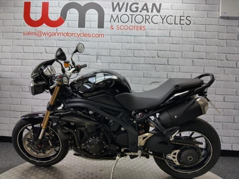 Triumph Speed Triple 94 in black, 2016/66, just 4,483 miles covered from new, superb low mileage limited edition model that comes with both handbook, service book, 2 keys, service history, fitted with a grab rail, heated grips and a tail tidy, great looking bike and now in stock at Wigan Motorcycles.