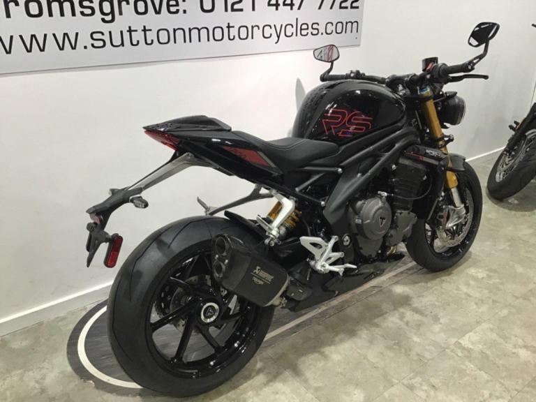 Triumph Speed Triple 1200RS in Black loaded with £2000 worth of Accessories! Including Akrapovic Titanium Exhaust Silencer, Triumph Sport Bar End Mirrors, Triumph Front & Rear Brake Reservoirs, Triumph Axle Nut Finisher.