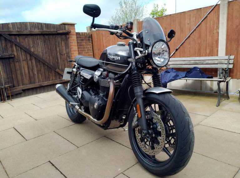 Speed Twin 1200, in excellent condition. Never dropped, dinged or dented. Mature owner, I have owned the bike since it was 3 yrs old and am downsizing to smaller cc. Bike has Dart flyscreen and fender extender. MOT'd until 10/5/2027. (Please note I have no wish to swap or trade in)