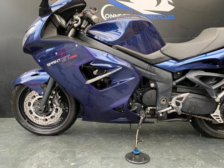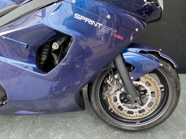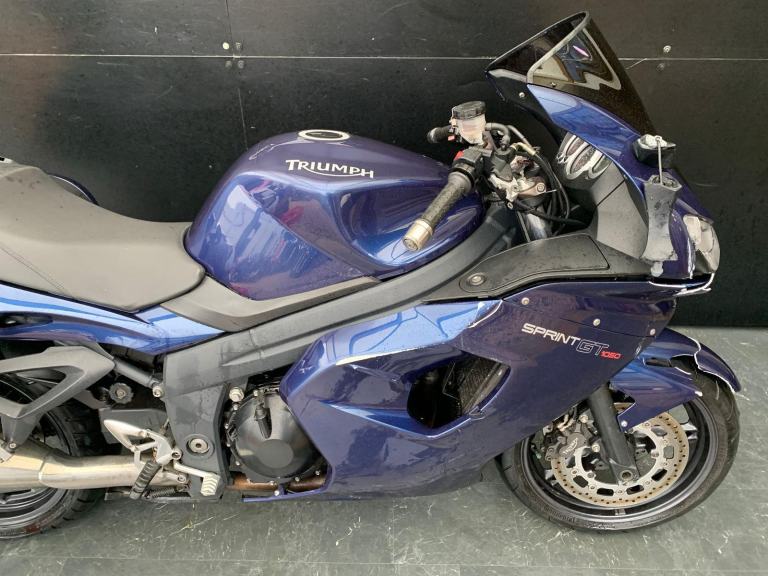 Here we have for sale a Triumph Sprint GT 1050 as a project bike in overall fairly good condition. This bike starts on the button, the engine sounds fine. All of the electrics are functional. As shown, there is damage to the front end which includes the front mudguard, head light and brake lever. The tyres are in good condition. The MOT expires 08/07/2026. We have the V5, service book with 5 stamps and Owner's manual for this bike.