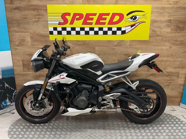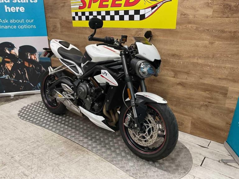 Triumph Street 111 RS,2019, 10451 miles, 2 owners from new, 7 Triumph service stamps, last service 08/2025 at 9651 miles,arrow can, tail tidy, service book, handbook, spare key, stunning looking bike,Retail bikes: Competitive finance & great part exchange allowances. Call our team for an easy, no obligation quote. All our retail bikes come with a full PDI, valet & 3 months total cover warranty (additional £75). Credit & debits cards accepted. Delivery in mainland UK from only £125 + VAT. Compulsory admin fee of £100 for 3rd party finance.