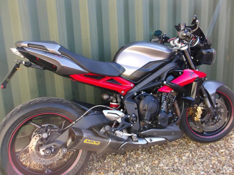 Triumph Street Triple R ABS, This bike has only covered 11,495 miles from new & comes with a fitted Arrow exhaust system, Adjustable levers, Bar end mirrors, RG crash protectors, Gel seat, Quick shifter, Evo tec indicators & tail tidy, 2 Keys, Service history, Hpi & DVLA History checked, Only £5795.