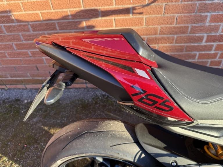 Triumph Street Triple RS 765, 2024/24, finished in red with 3,152 miles covered from new, comes with both handbook and service book with FSH having been serviced at 628 and 2,146 miles, both keys, data tagged, balance of the Triumph warranty till July 2026, fitted with a tail tidy plus a seat cowl, in superb condition and finished in a great colour., now in stock to view or call Wigan Motorcycles on 01942 491491.