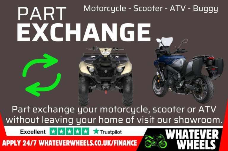 Here at WhateverWheels, we have over 250+ bikes available onsite at our 6,000 Sqft showroom situated in Great Harwood, Blackburn, Lancashire. We have plenty of choice between our new and used range with full dealer facilities available. Our showroom is open six days a week for your convenience. Our bikes are the lowest priced on the internet so hurry as stock moves quickly.