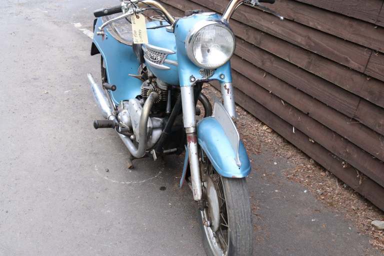 Fresh in from Canada, a 1961 Triumph Thunderbird T110 with matching numbers. Engine turns over with compression, but attempt has been made to start it.Super rare in this condition. Great project!!