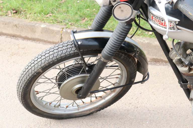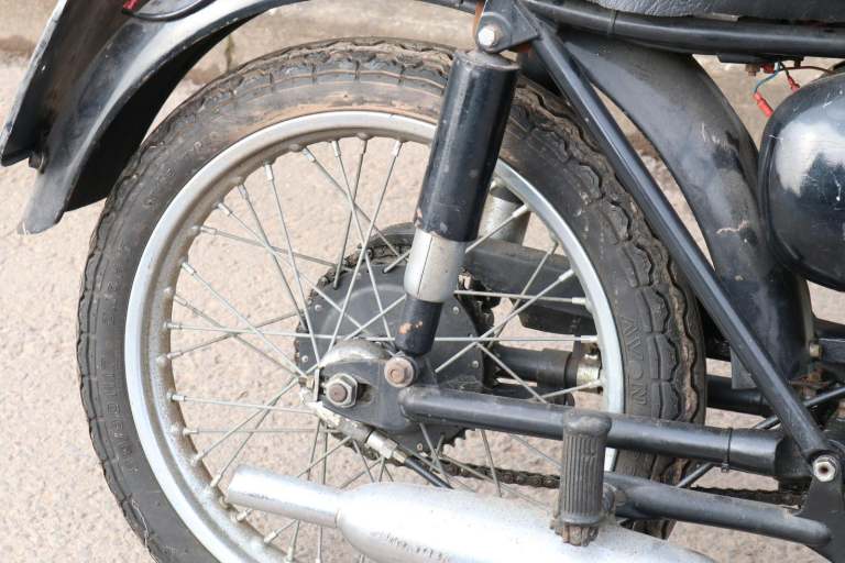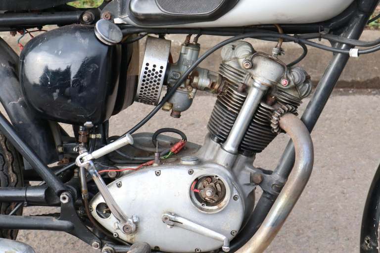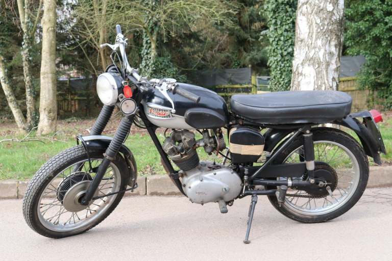 Fresh into stock and from a deceased estate, a 1963 Triumph T20 Tiger Cub. Engine turns over with compression, but no attempt has been made to start it. There are no documents with the bike, but it's easy to register. You will need a dating letter from the Triumph Owners Club or similar club. And then fill in a NOVA1 form, which we will supply. The DVLA will charge £55 and issue you with an age related plate. Be quick on this one, everyone loves a Tiger Cub to fiddle with in the garage!!