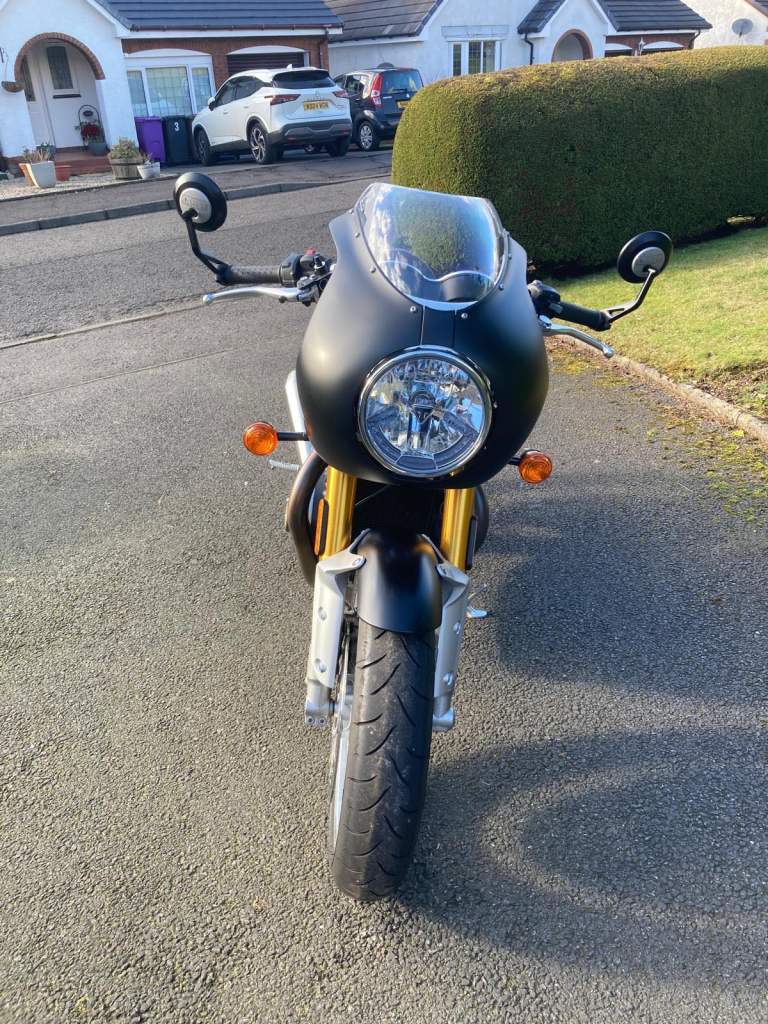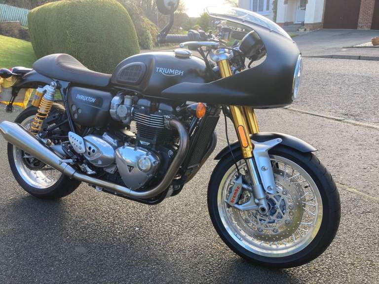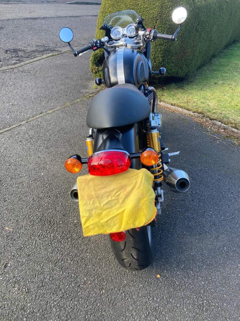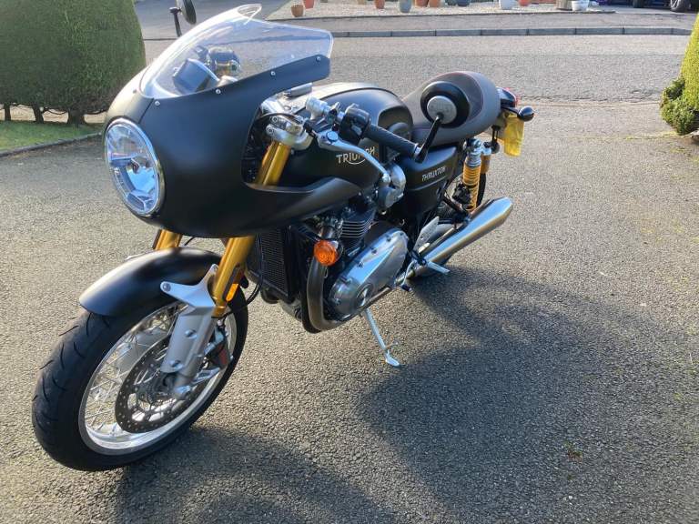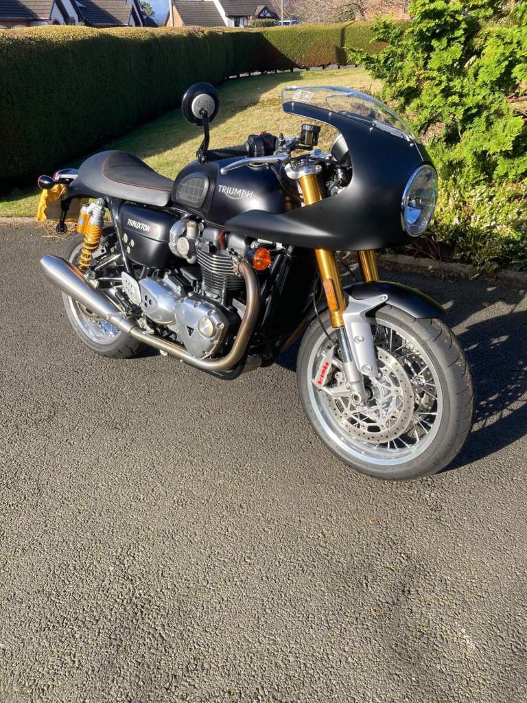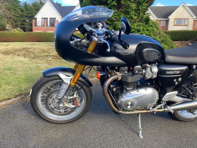 Triumph Thruxton R, 2016 (66-plate), colour coordinated Triumph bikini fairing, 3500 miles, very good condition, always garaged, MOT until 08/08/26, one previous owner (Panniers not included)