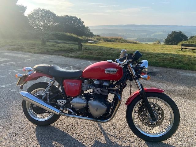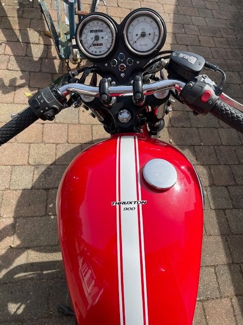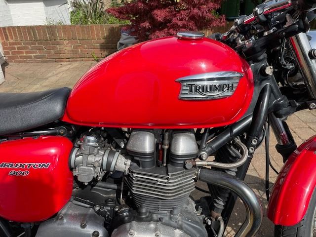Triumph Thruxton 900. A stunning Cafe Racer. A real head turner that always puts a smile on my face and anyone else standing around ! The 'After Market' Triumph 'Performance' Pipes Roar is just incredible, and give it that True Nostalgic feel. Low mileage and well maintained. ULEZ Compliant, 12 months MOT, 10,777 miles Oil and Filter changed at 10,600. Original exhausts (Unused) still boxed up, and detachable Rear Seat cowl included.