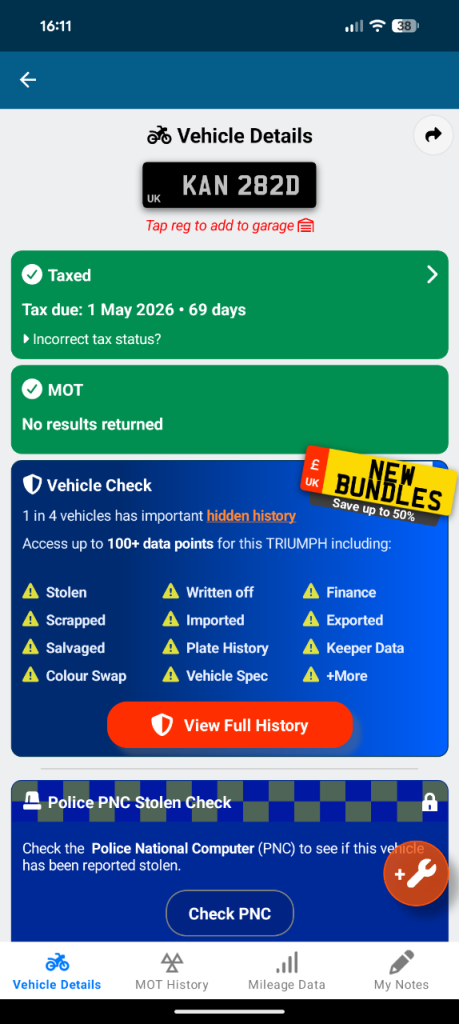 Buy the full report for guaranteed data accuracy, outstanding finance, valuation, milage check & VIN match for £9.99 (normally £19.99)