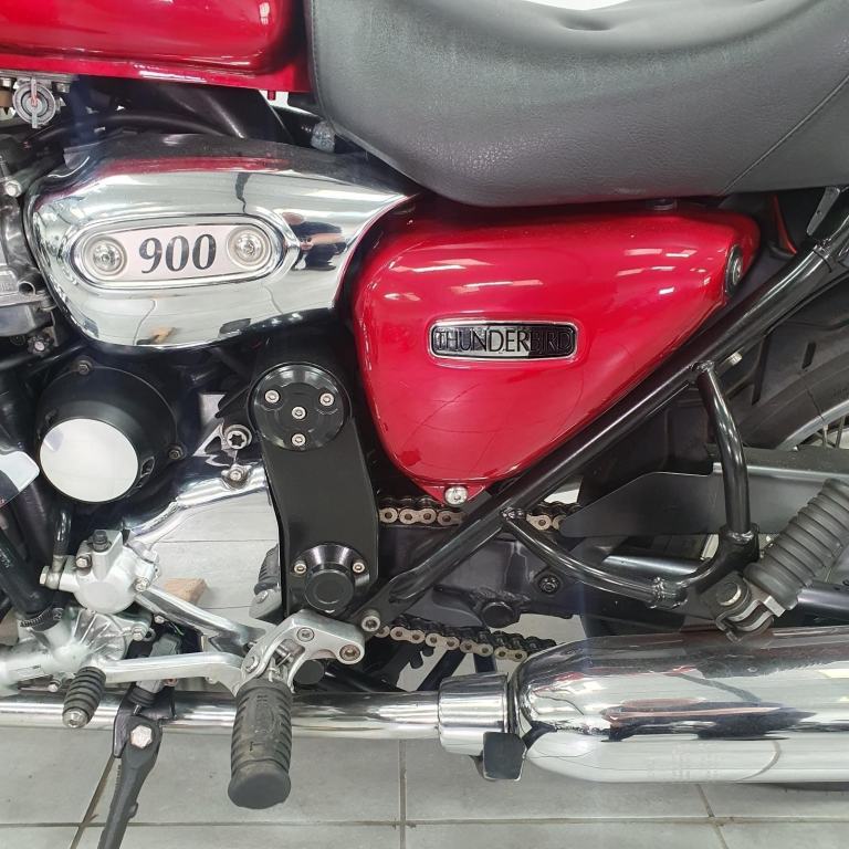 This Thunderbird has been well-cared for, with regular maintenance ensuring it runs as good as it looks. The paintwork is in great condition, with the iconic Cardinal Red & Silver combination gleaming beautifully. Chrome accents are in excellent shape, adding to the bike's vintage appeal.