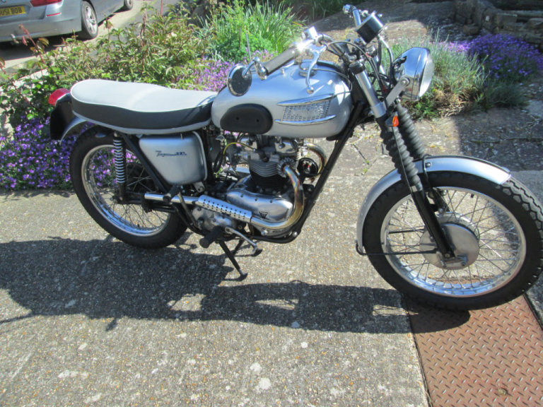 Steve Mcqueen replica / street scrambler, nice clean easy to ride bike. restored , matching numbers, rebuilt engine, gearbox. 12volts electrics. New handle bars, levers wheel rims and spokes ,good tyres, high level exhaust with mutes, now fitted with indicators , always draws admiring looks .Mot and tax exempt . Reason for sale ageing owner 79