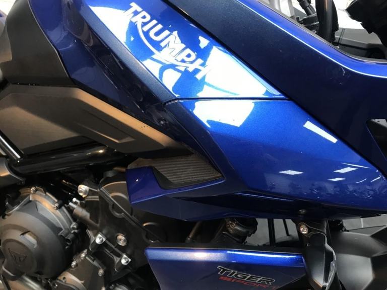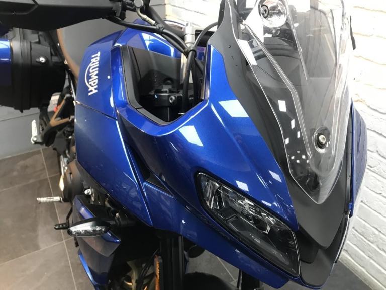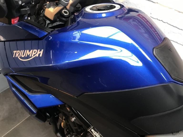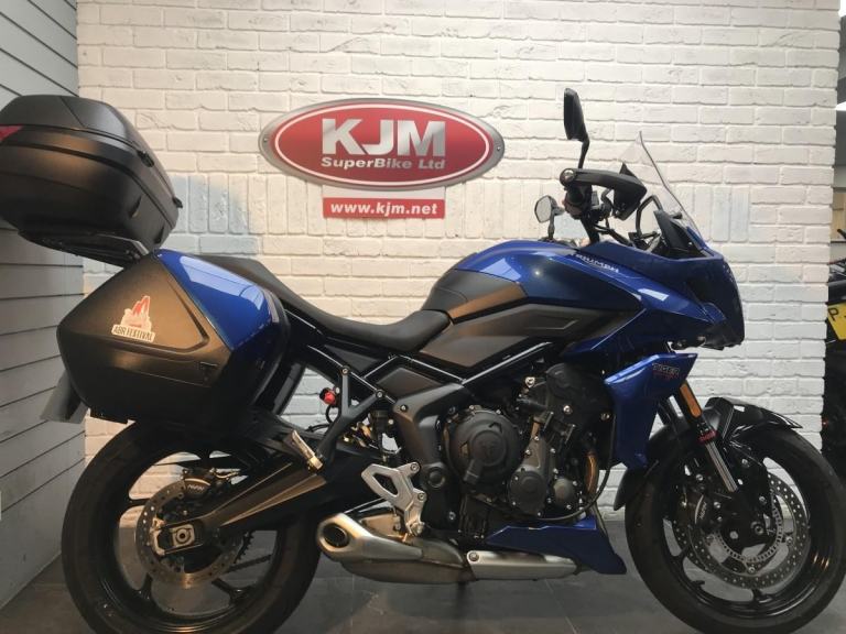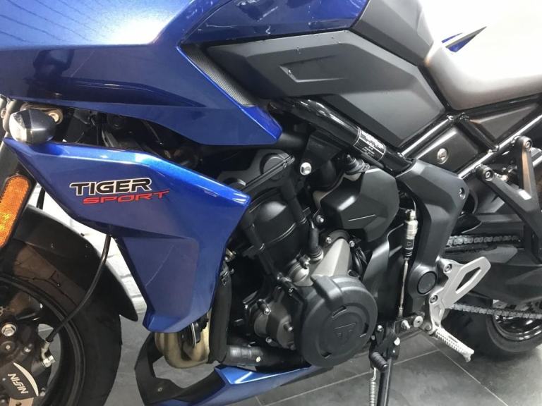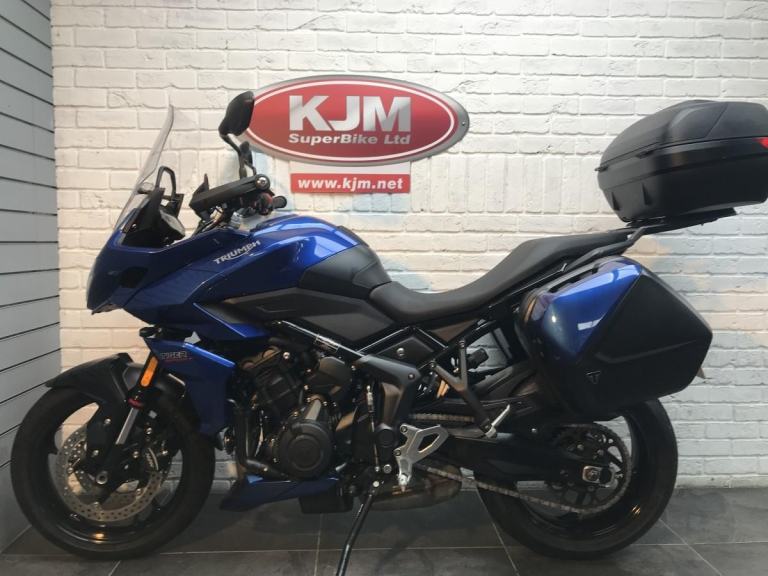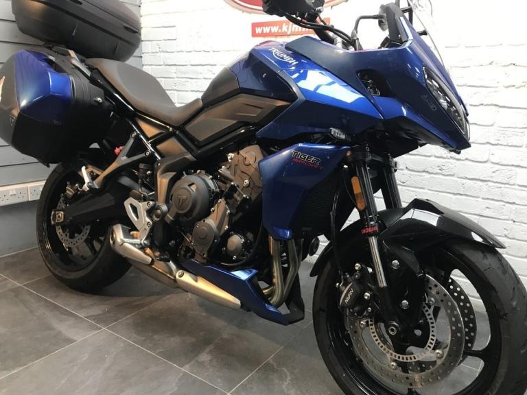 Triumph Tiger 660 Sport in blue, 2022/22, 1 Owner from new bike with just 2,572 miles covered, in immaculate condition in every way and comes with the owners handbook and service book with full Triumph service history having had 4 service stamp entries, also has both keys, fitted with 3 box luggage, rad guard, Triumph heated grips, engine protectors, quick shifter, low seat option plus standard seat included, superb bike now in stock at 6299.00.