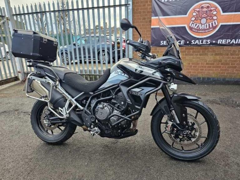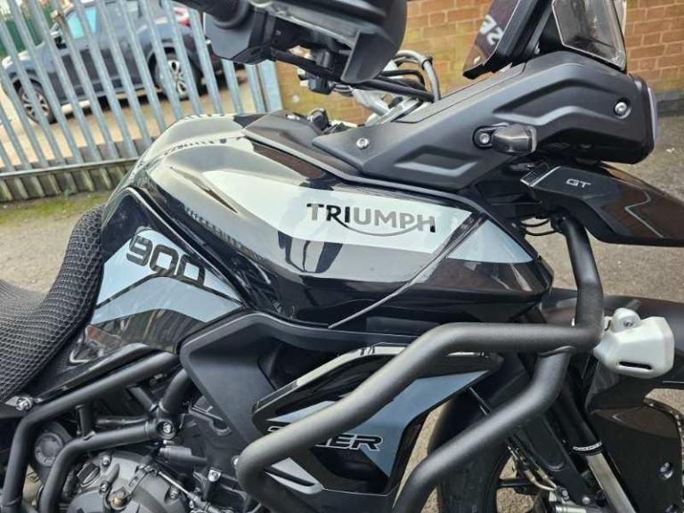 Triumph Tiger 900 GT (LRH - LOW RIDE HEIGHT, FACTORY LOWERED), 16591 miles, Registered 21/07/2021 (21 plate), Only 1 Owner, HPI clear, 2 Keys, Triumph full luggage rack with Triumph top box (matching key), Service book (stamps at 700 miles, 3101 miles, 6450 miles, 12582 miles + another stamp when we service it). Lower & upper engine bars, new tyres, new brake pads, Datatag, heated grips, Fog lights, centre stand, sump guard