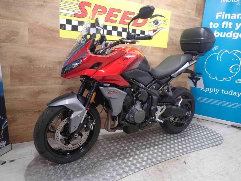TRIUMPH TIGER SPORT 660,2022,3604 MILES,RED/GREY,TWO PREVIOUS OWNERS,3 SERVICE STAMPS,HPI CLEAR,SERVICE BOOK AND OWNERS BOOKS PRESENT,TWO KEYS,TOP BOX,All told, the Tiger Sport 660 is an impressive, capable, composed, extremely friendly bike. It will tackle traffic and the track, mountain roads and poorly paved surfaces. It will handle dirt roads as well as any street bike; probably better. One question kept bubbling up, though: Who is this bike for?