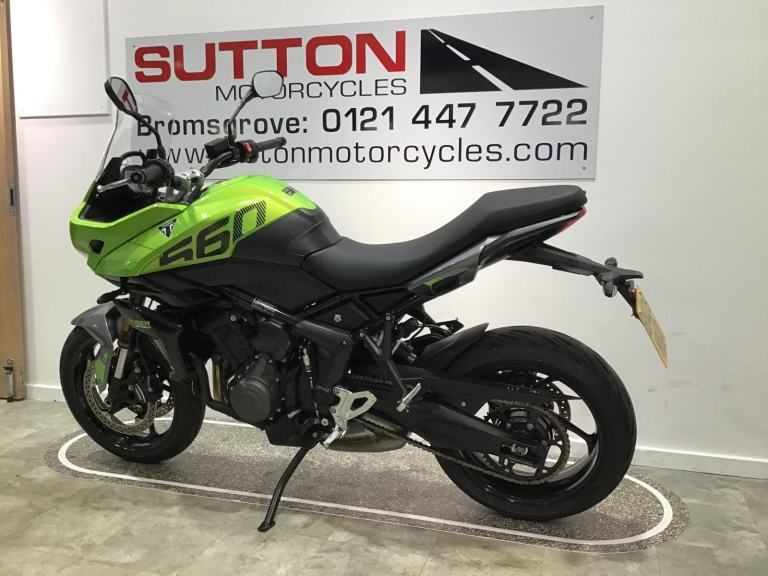 Triumph Tiger Sport 660 Ex Demo with only 448 miles. Looks stunning in Roulette green and lovely condition. First service just carried out.