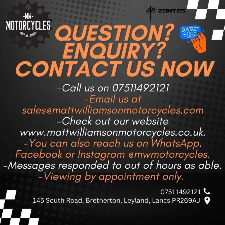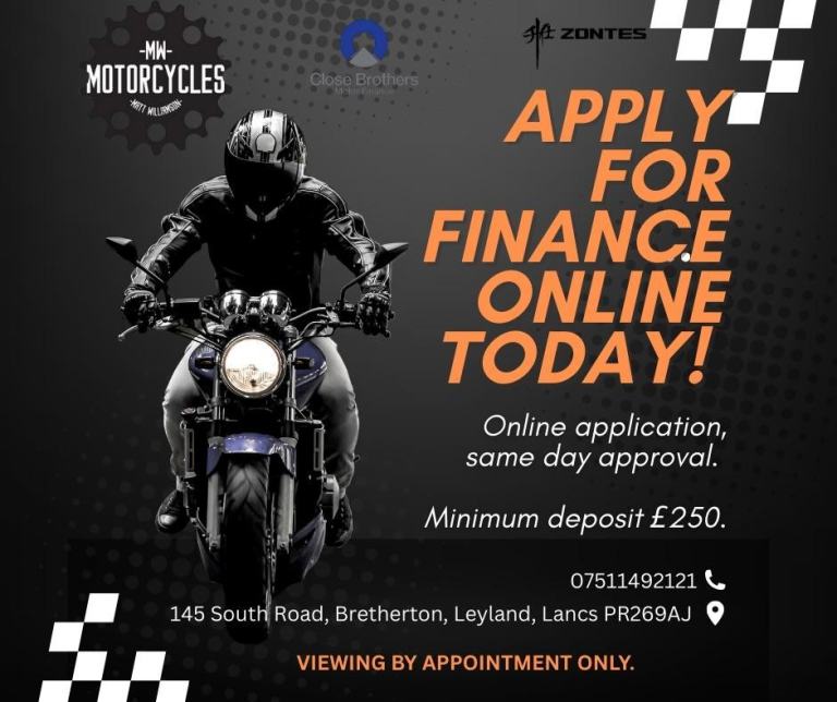 You can own this bike with low monthly payments on one of our PCP plans. HP is also available that can be tailor made to suit your requirements, subject to status. Methods of payment accepted in store debit card. Away from store bank transfer. Please note we do not accept credit cards.