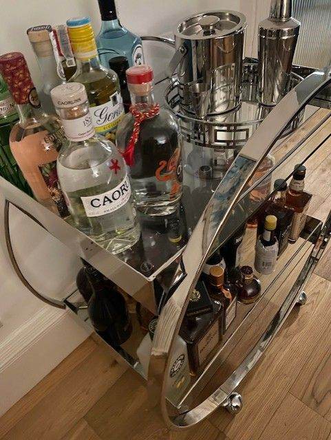 Posting for 11+ yearsChrome Metal Clear Glass Drinks Trolley