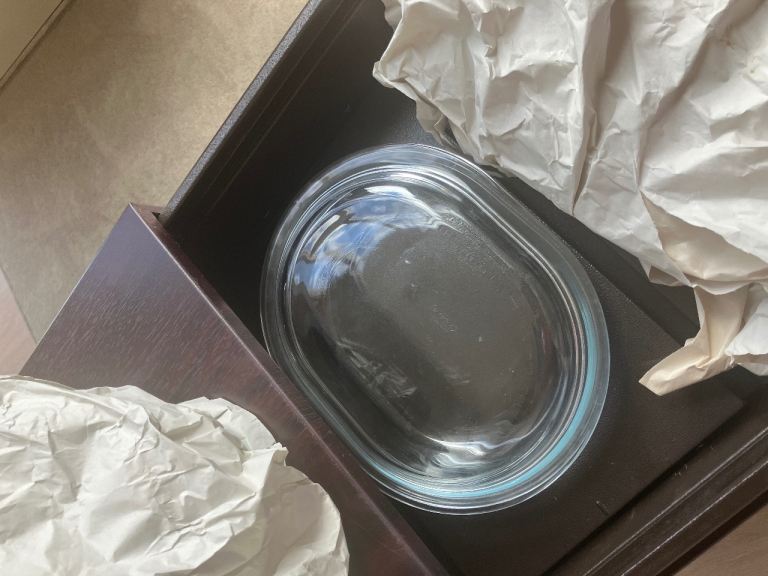 Original style hostess trolley with heated shelves and Pyrex lidded serving dishes x 3