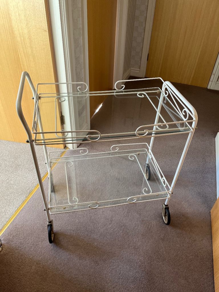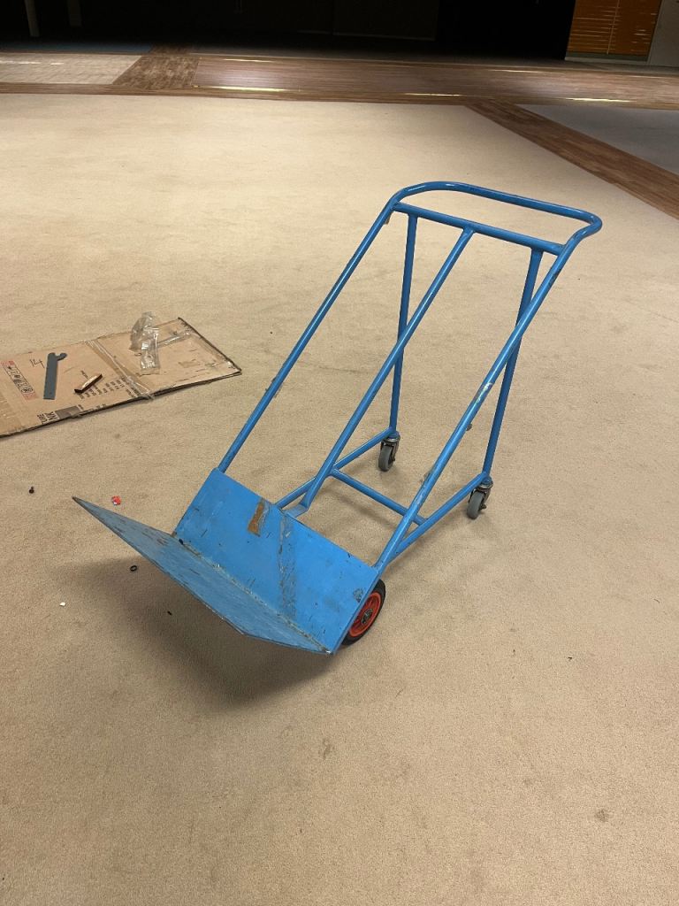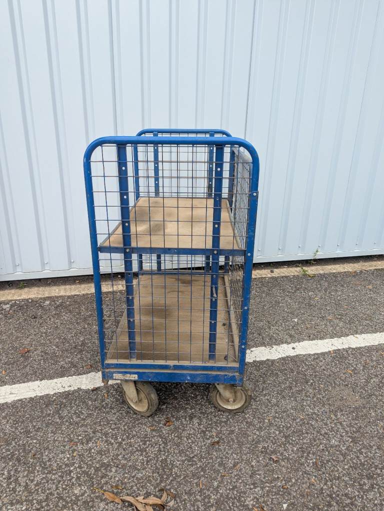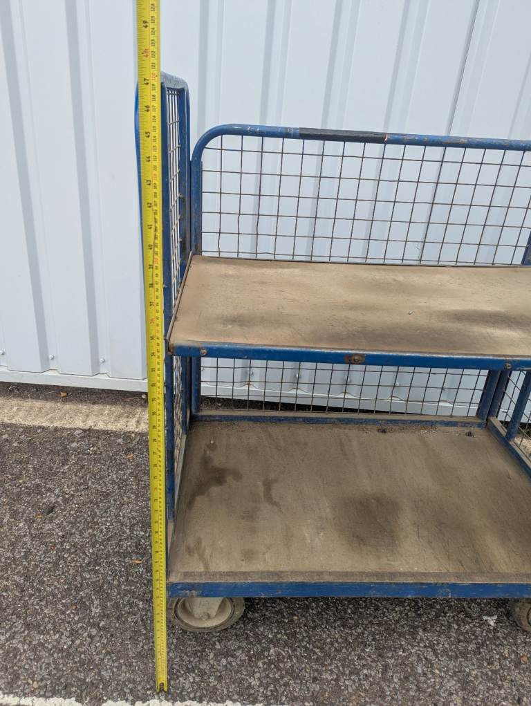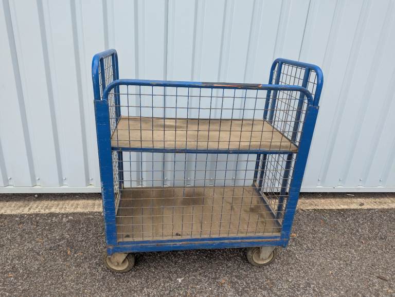 This sturdy, blue metal trolley is ready for its next task. Originally used for light warehouse duties, it's showing signs of wear but remains fully functional and reliable. The steel frame is robust, supporting substantial weight, and the four swivel castors ensure smooth maneuverability even when loaded. There are some cosmetic scratches and scuffs to the paintwork, as shown in the photos, but no structural damage. Ideal for workshops, garages, or even for stylish storage solutions. Approximate dimensions are 90cm long x 60cm wide x 80cm high.