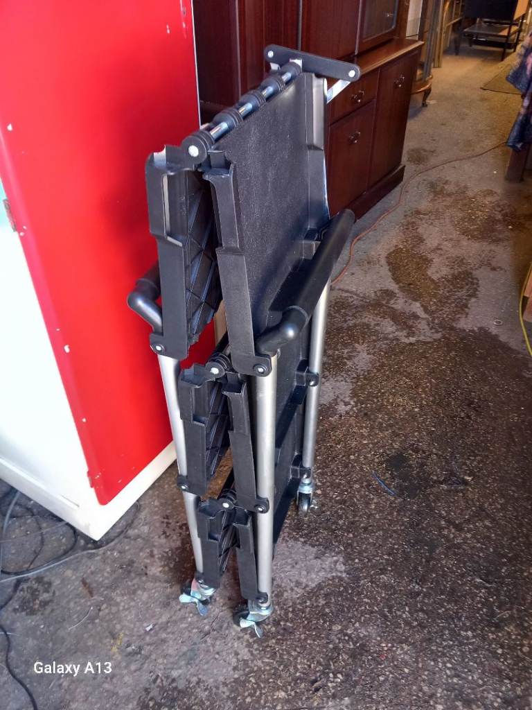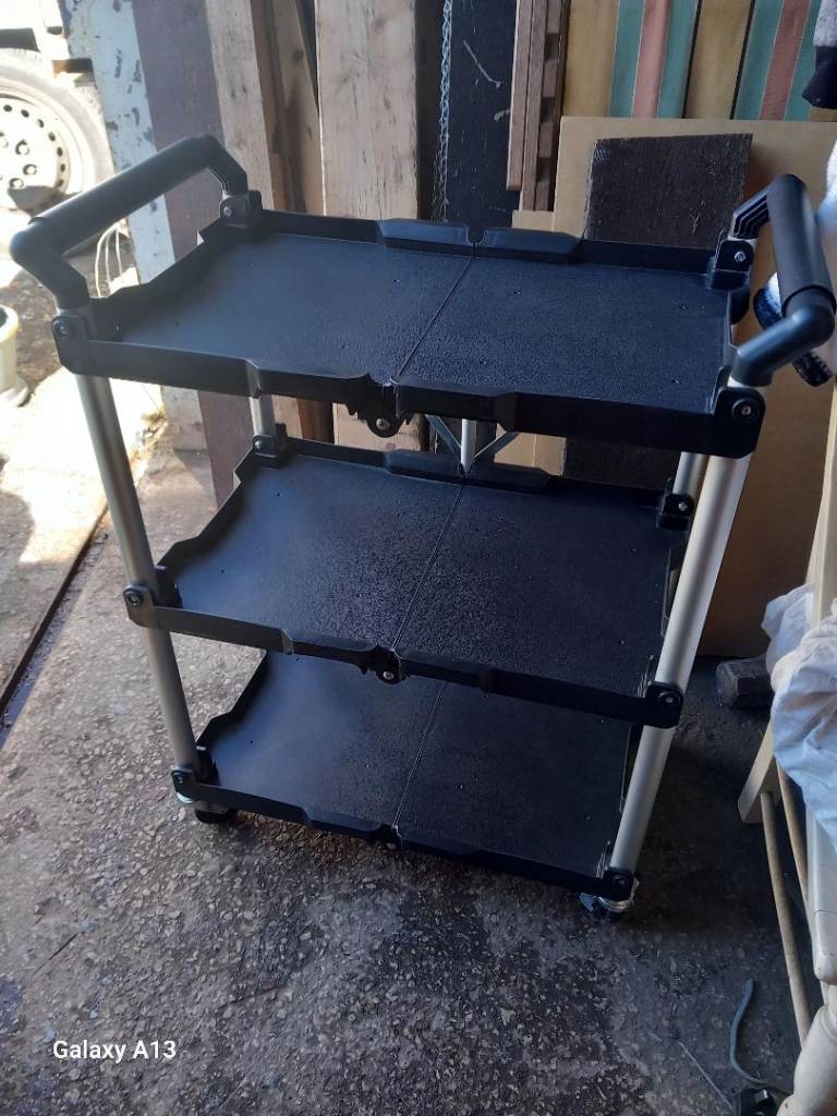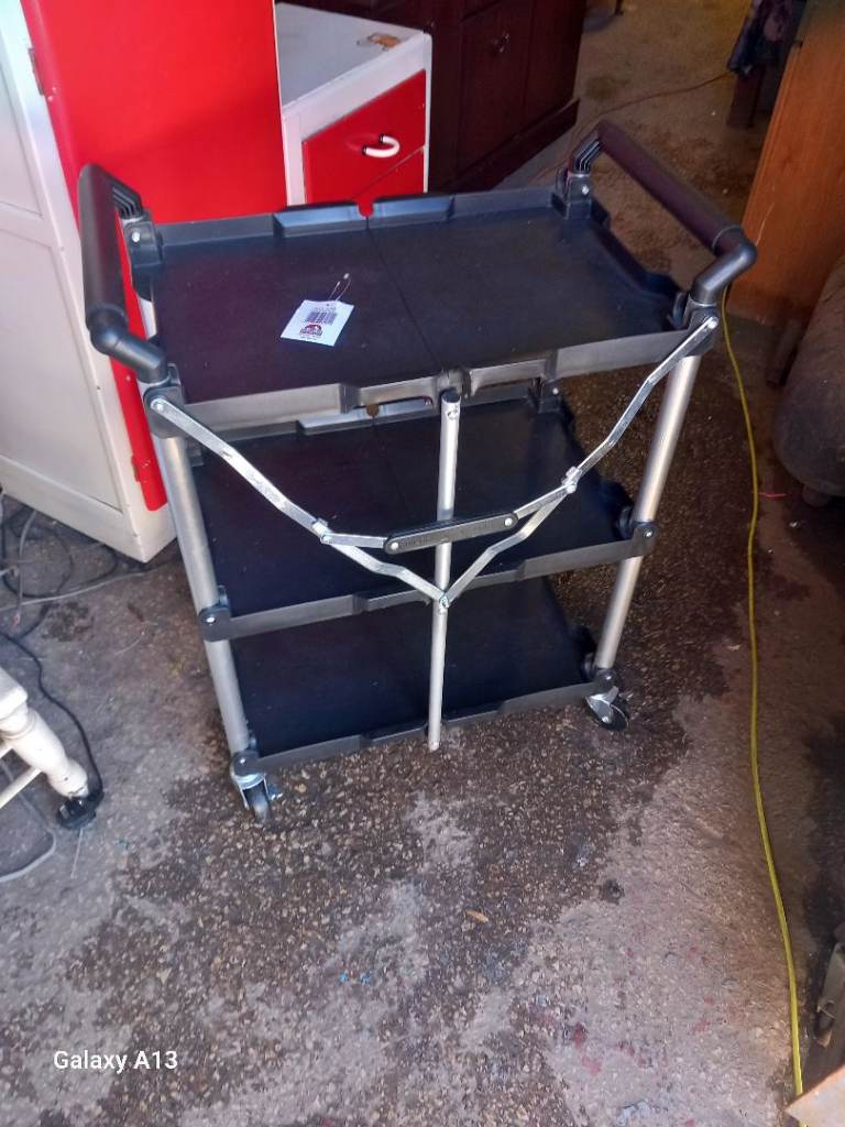 3 tier service trolley , folding for storage , on wheels , excellent condition