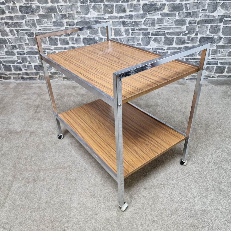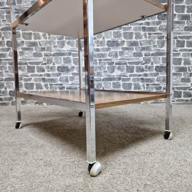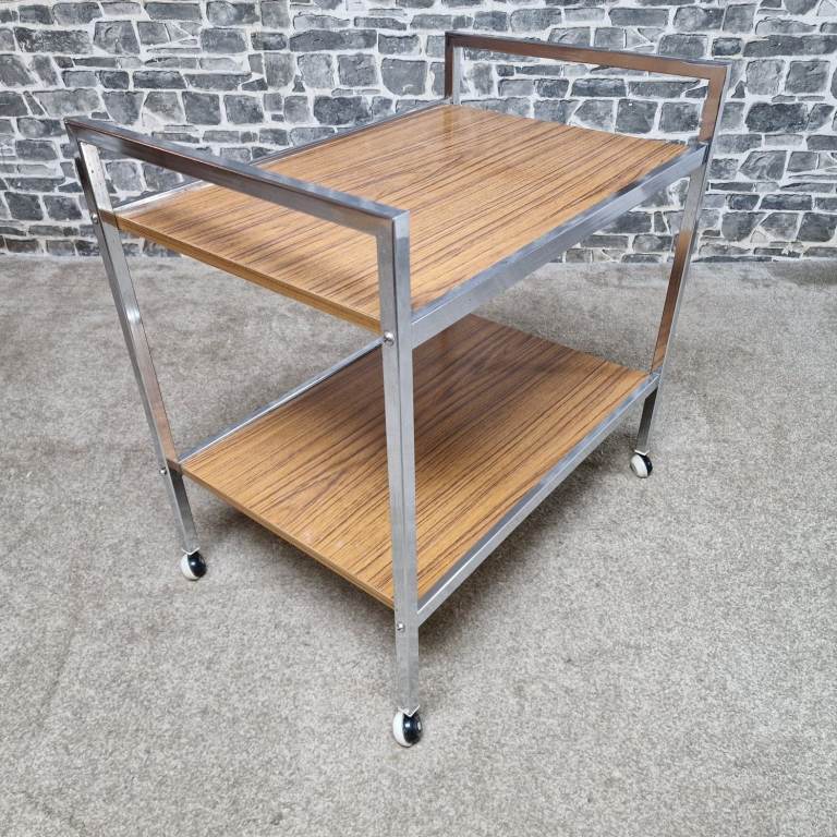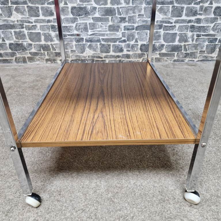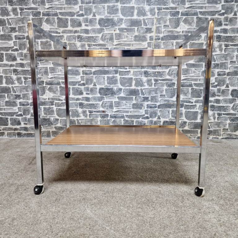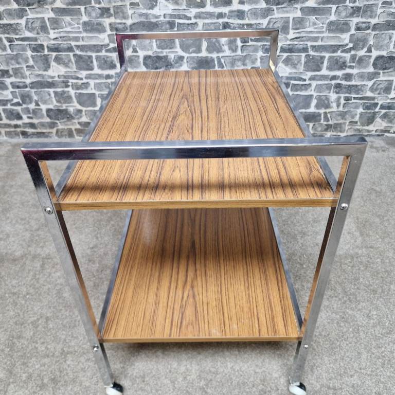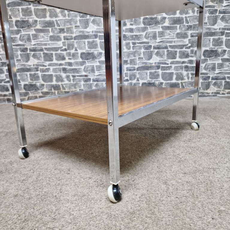 Vintage Chrome & Wood Effect Drinks Trolley on Castors
