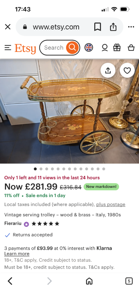 Reluctantly selling my beautifully restored vintage drinks trolley.