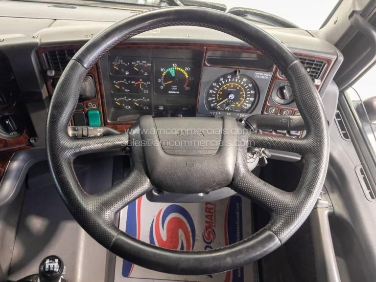 2002 (52) Scania 16L 580 V8 Low Sleeper Cab, Manual Gearbox, Sliding Fifth Wheel, Side Mounted Batteries, Alcoa Alloys, 4M WB, Upright Exhaust, Catwalk, Rear Cab Window, Sun Visor with Spots, Beacons, Leather Seats, Leather Steering Wheel, Great Condition, MOT 31st August 2026, 1.2M KMS, Finance Available Subject to Status.