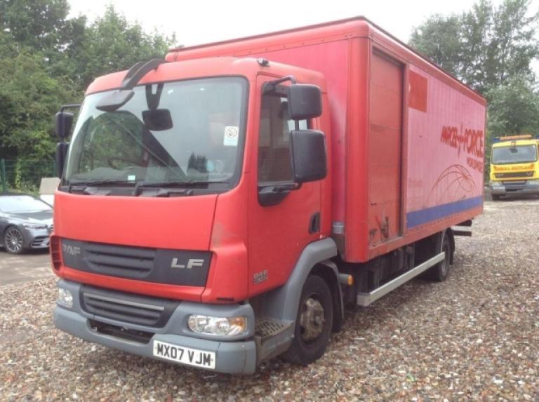 REF TG 3454 REG MX07VJM DAF LF 45 140 4X2 DAY CAB 400.000 KMS WARRANTED MANUAL GEARBOX REVERSING CAMERA DOUBLE PASSENGER SEAT 7.5 TONNE GROSS SPRING SUSPENSION FITTED WITH 21 FOOT LONG GRP BOX BODY REAR AND SIDE LOADING DOORS ONE OWNER VERY GOOD CONDITION NO VAT IF GOING FOR EXPORT REF TG 3454