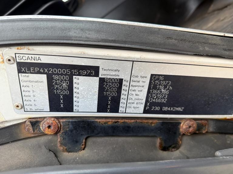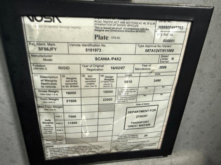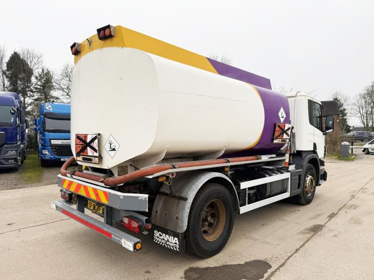 2007 SCANIA P230 11,500 LITRE FUEL TANKER, 4 POT, TOP AND BOTTOM LOAD, PRODUCT RETURN, MECHTRONIC EQUITMENT AND METER, HOSE REEL, PRINTER, ADR SPEC, BULK UNLOAD, MANUAL GEARBOX, 559,000 KMS.